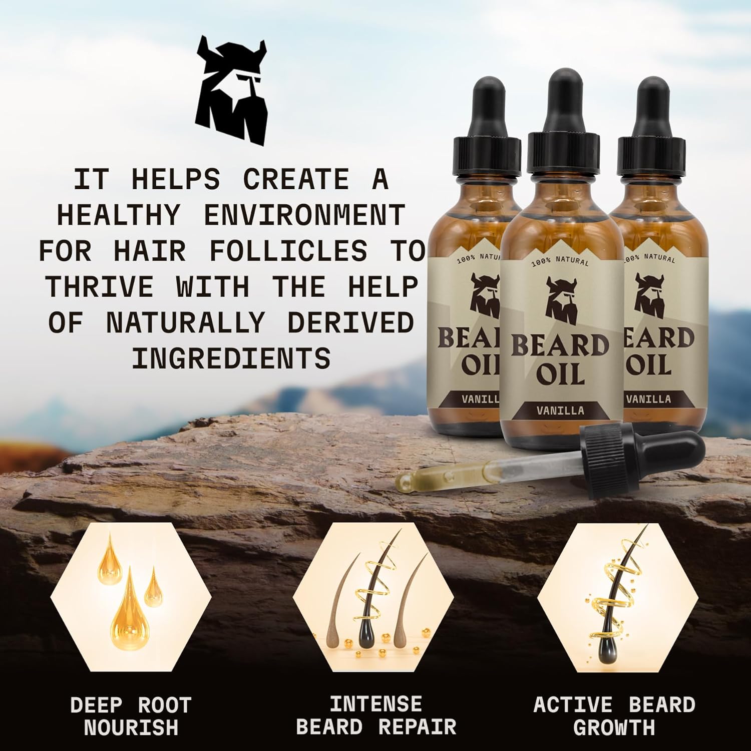 - Viking Beard Care: Elevate your grooming game with Striking Viking Vanilla Beard Oil, your go-to for beard growth oil and beard care. Packed with jojoba and almond oils, it deeply hydrates and softens your facial hair and skin