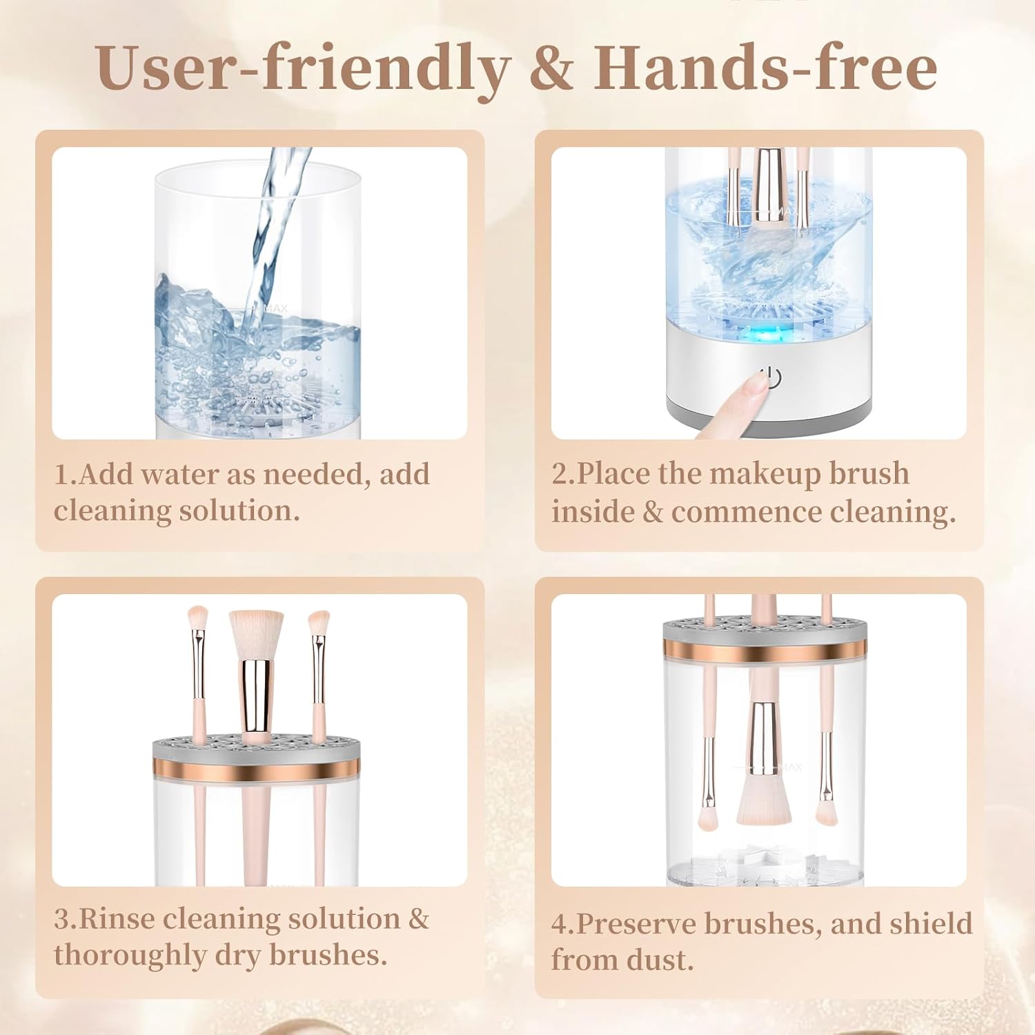 - Versatile and highly adaptive: Whether it is an eyeshadow brush, foundation brush, or blush brush, our makeup brush cleaner can handle them all, adapting to various types and sizes of brushes, ensuring your beauty tools remain clean at all times.