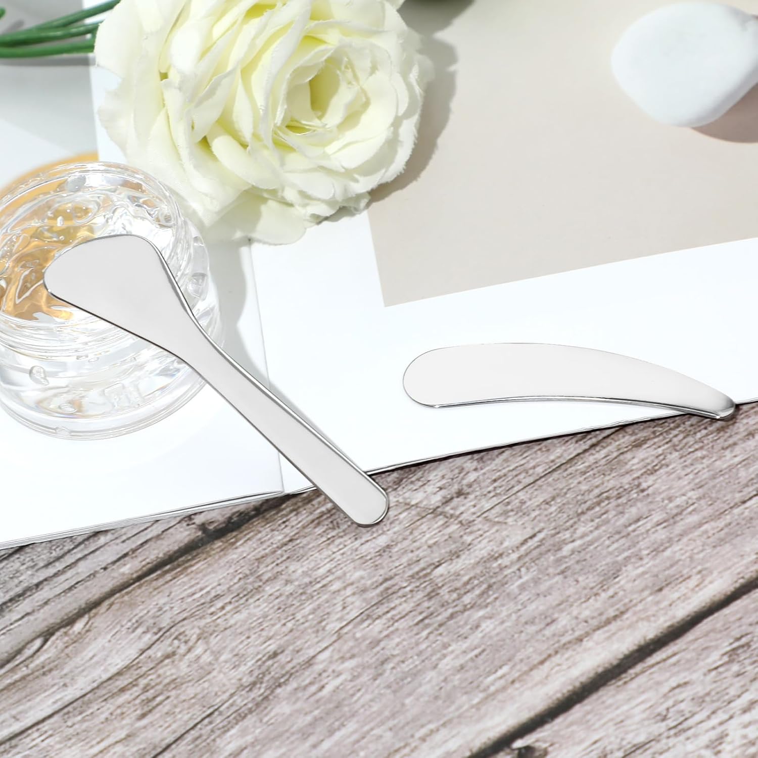 - 【High-Quality Material】The makeup spatula is made of high-quality stainless steel material, and the cosmetic spatula is not easy to deform and rust. The periphery of the skin spatula is polished smooth, so it will not damage your skin when you use it, so you can use the lotion applicator with confidence.