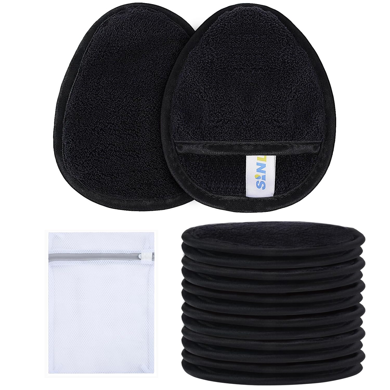 SINLAND Reusable Makeup Remover Pads For Face,Eye,Lips Microfiber Gentle Facial Cleansing Cloths for All Skin Types Friendly for Makeup Remover With Laundry Bag Black Pack of 12