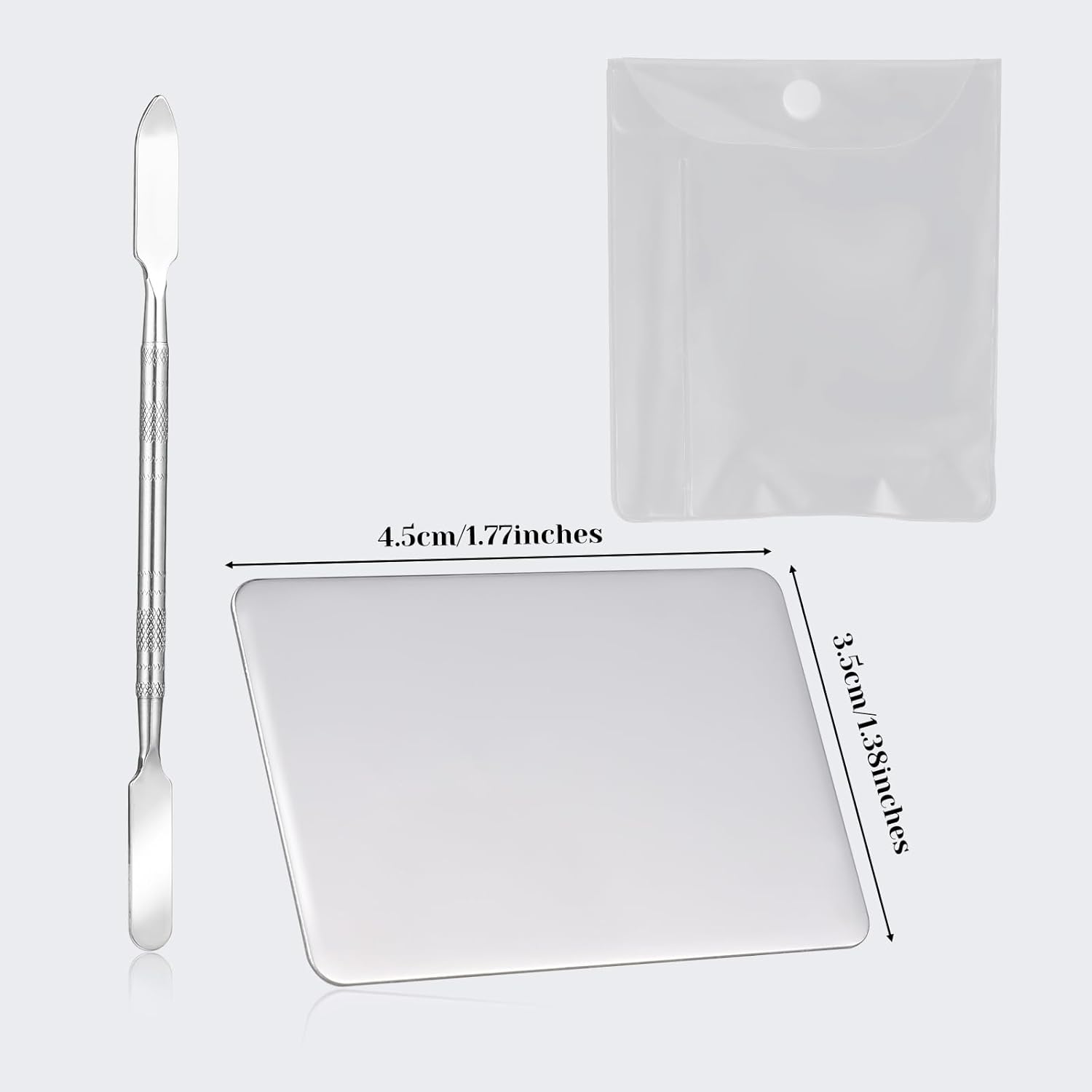 - 【You Will Get】The stainless steel cosmetic palette consists of a palette and foundation spatula set, makeup pallet is fashionable and unique in style and is enough for your daily replacement or use. You can also share foundation spatula with your family or friends.