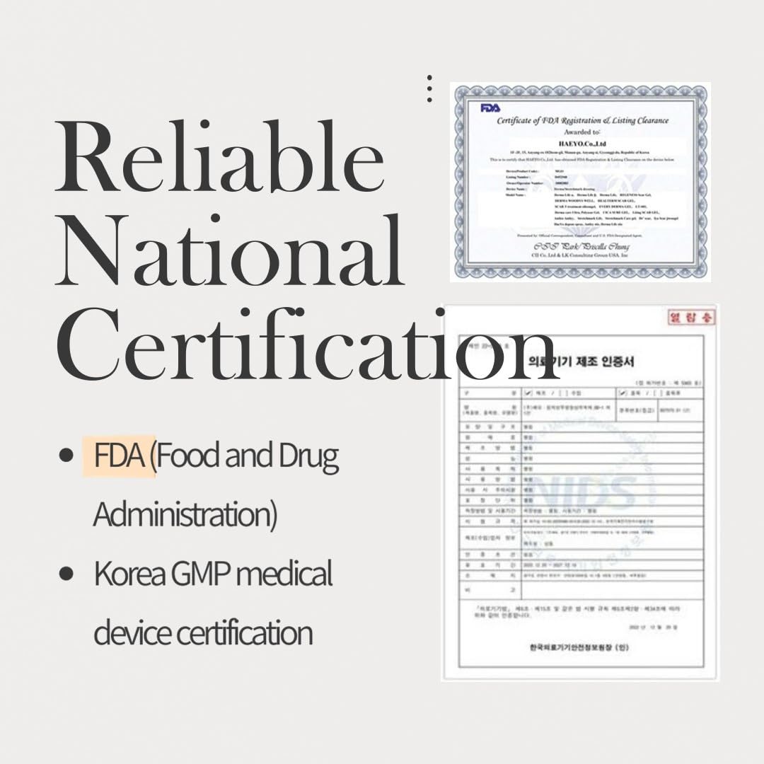- Reliable National Certification: You can trust and use it with US FDA Food and Drug Certification and Korea GMP medical device certification.