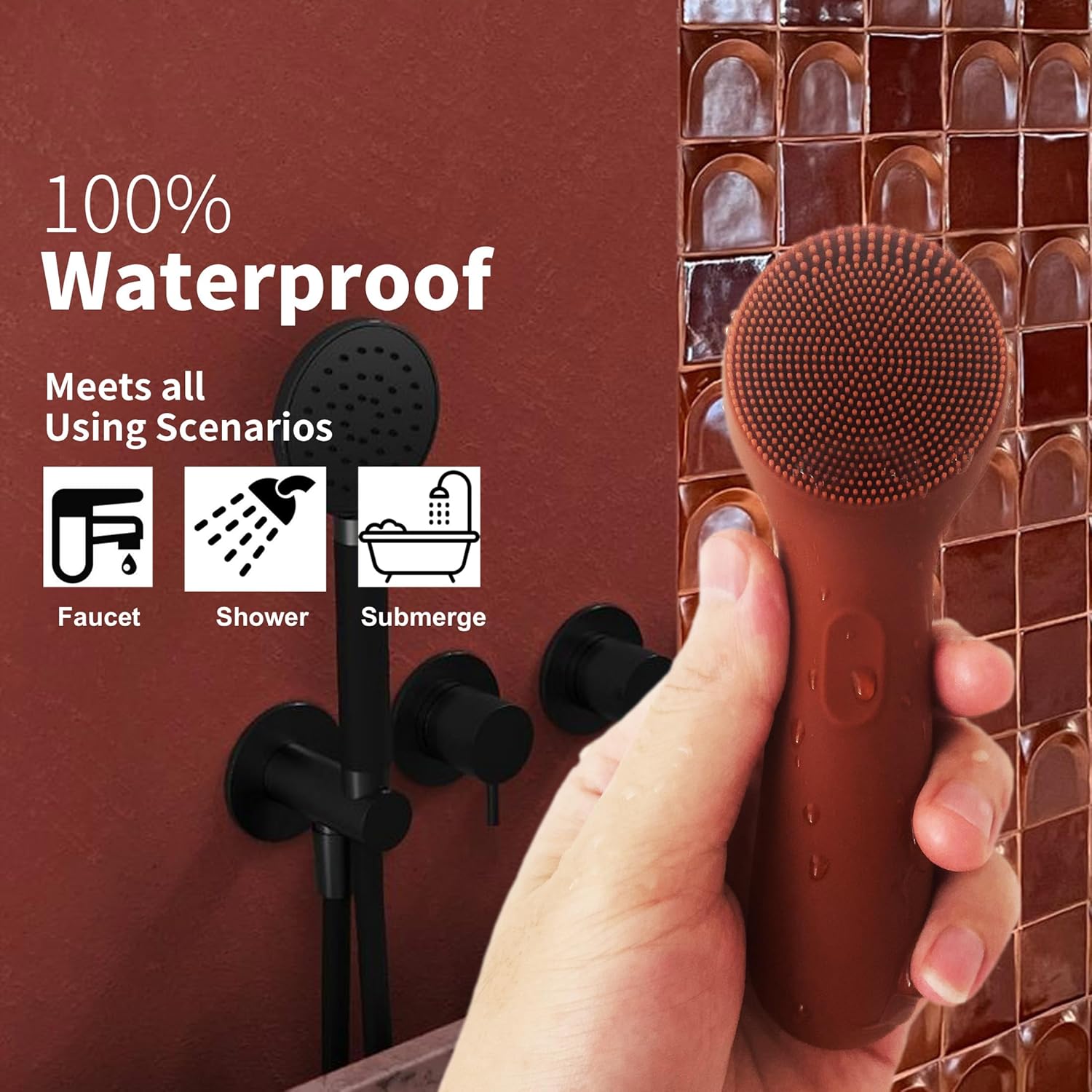 Silicone Face Scrubber, NågraCoola CLIE 2.0 Facial Cleansing Brush, Rechargeable, Waterproof Face Scrub Brush for Cleansing, Exfoliating, Massaging, Electric Facial Exfoliator for Women and Men-Russet