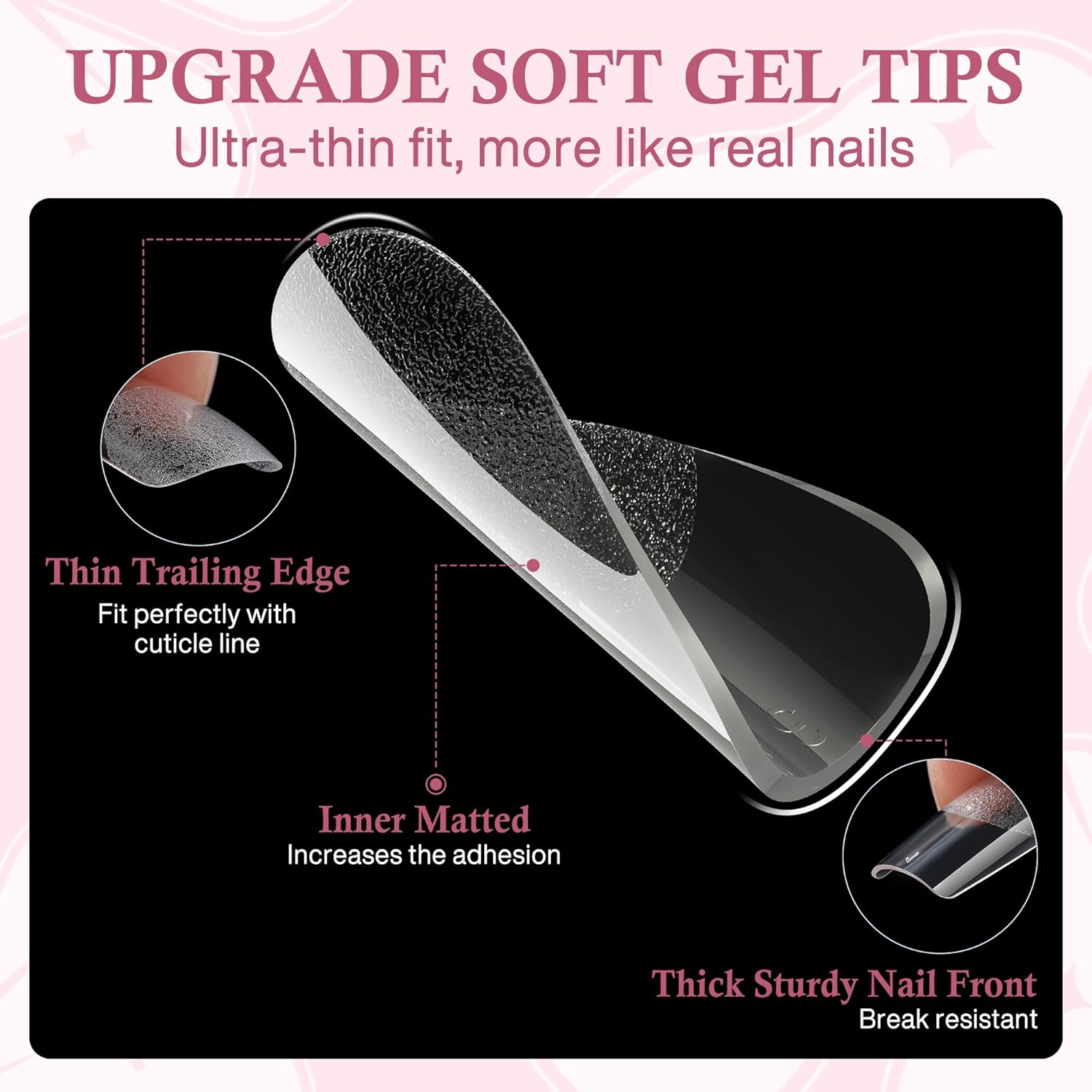- ❤️ Wide Application: Luckyfairy Soft Gel Tips can be used for gel nail polish, acrylic nails, dip powder nails, poly nail extension gel, nail decorations, etc. Suitable for both DIY at home and professional nail salons.