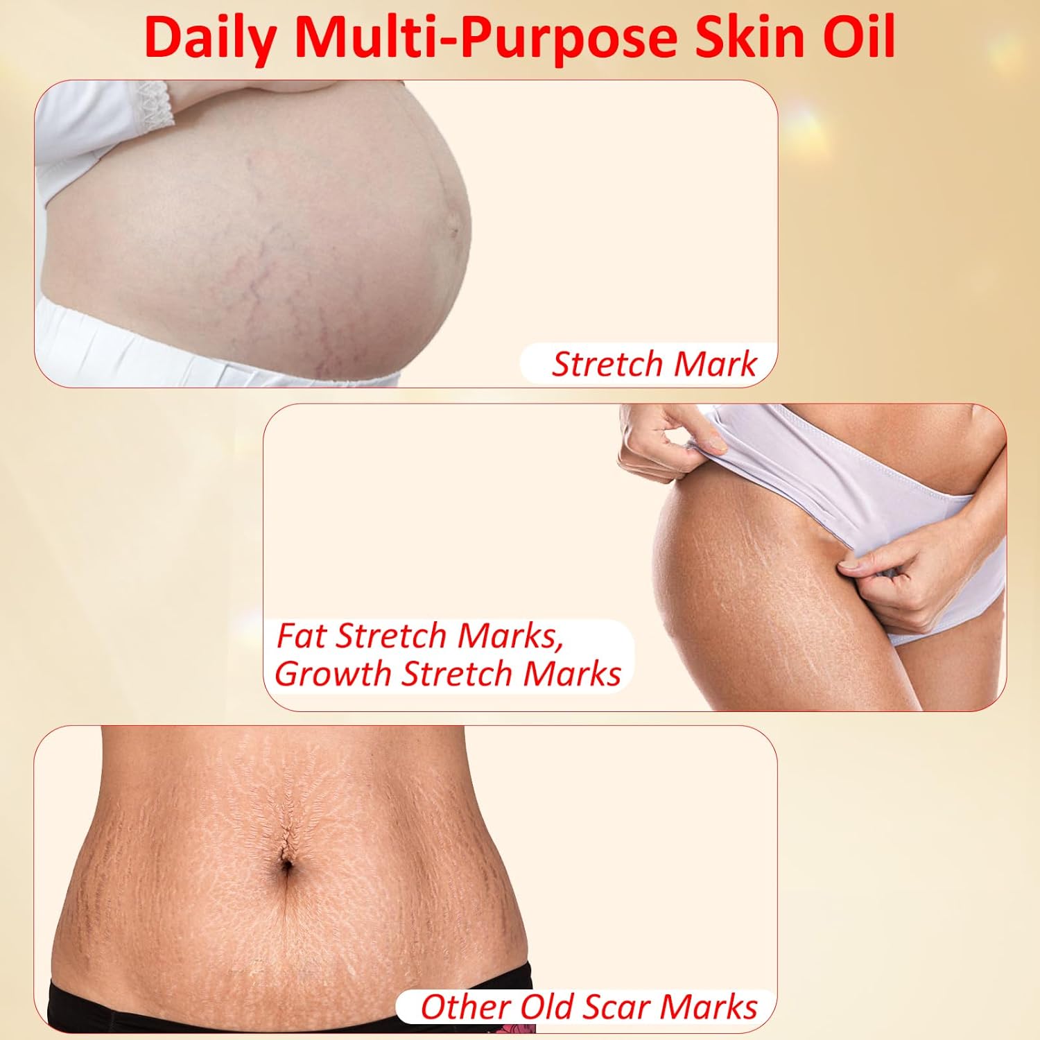 - 🔸【Multi-Purpose Stretch Mark Oil for All Skin Types】 - Helps soften skin for all types, tones, textures and safe for use on face and body and won't clog pores. Provides natural care for scars, stretch marks, and aging & dehydrated skin.