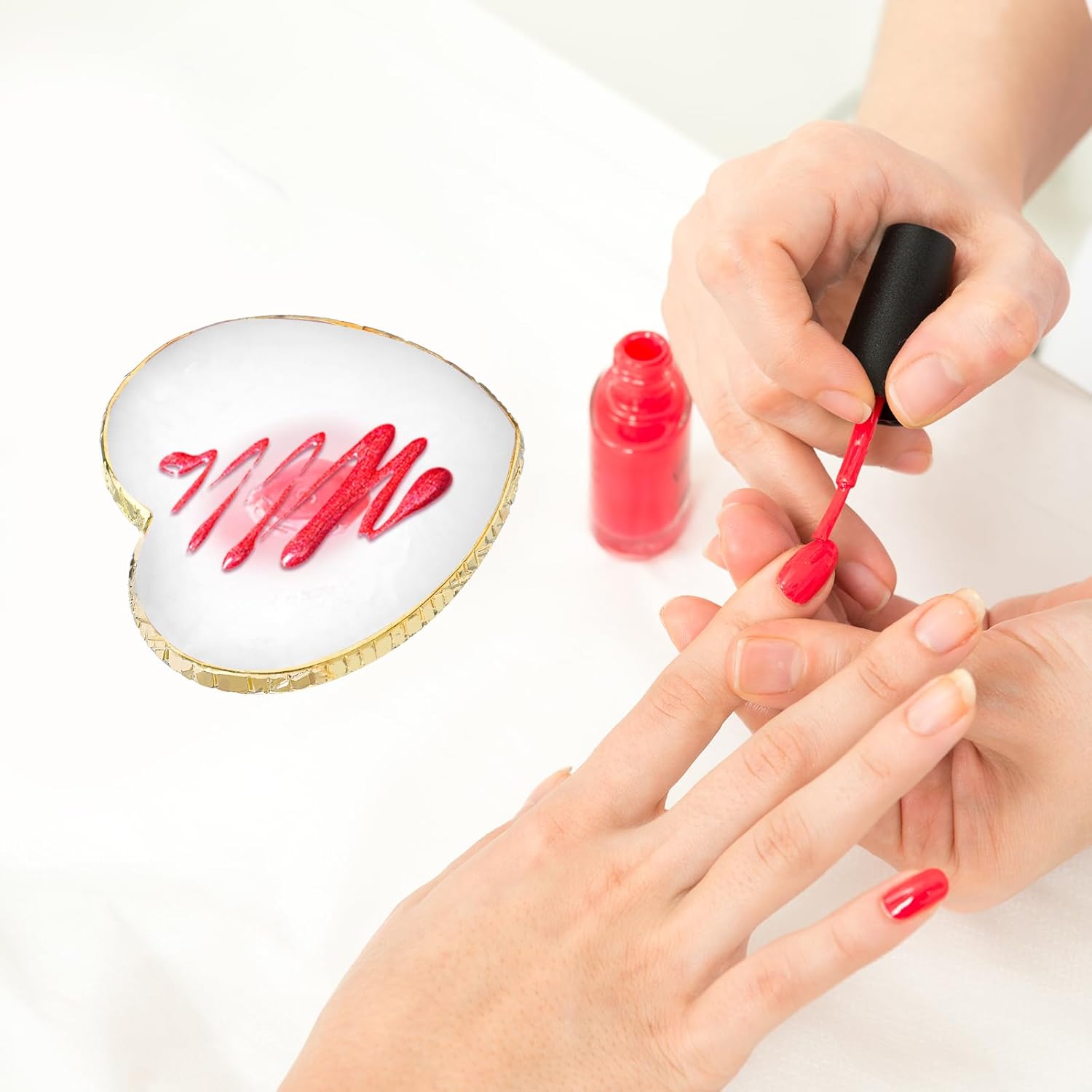 Resin Nail Art Palette, Polish Color Mixing Plate Gold Edge Nail Holder Nail Mixing Palette Mixing Tools Display Board Heart Shaped Color Makeup Foundation Cosmetic Mixing Tools (White)