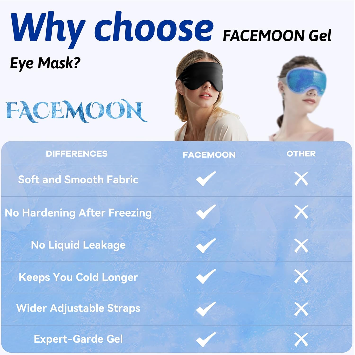 - 【Keeping Cold for Longer】The ice eye mask is made from a hydrogel layer, an ultra-soft and elastic cooling material that does not harden after being frozen. Compared to other materials, it retains its cooling effect for a longer period, providing you with a lasting cooling experience.