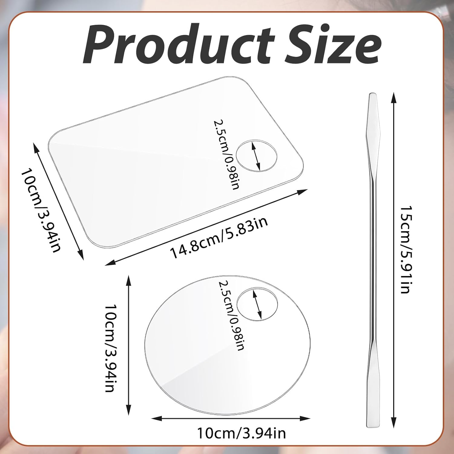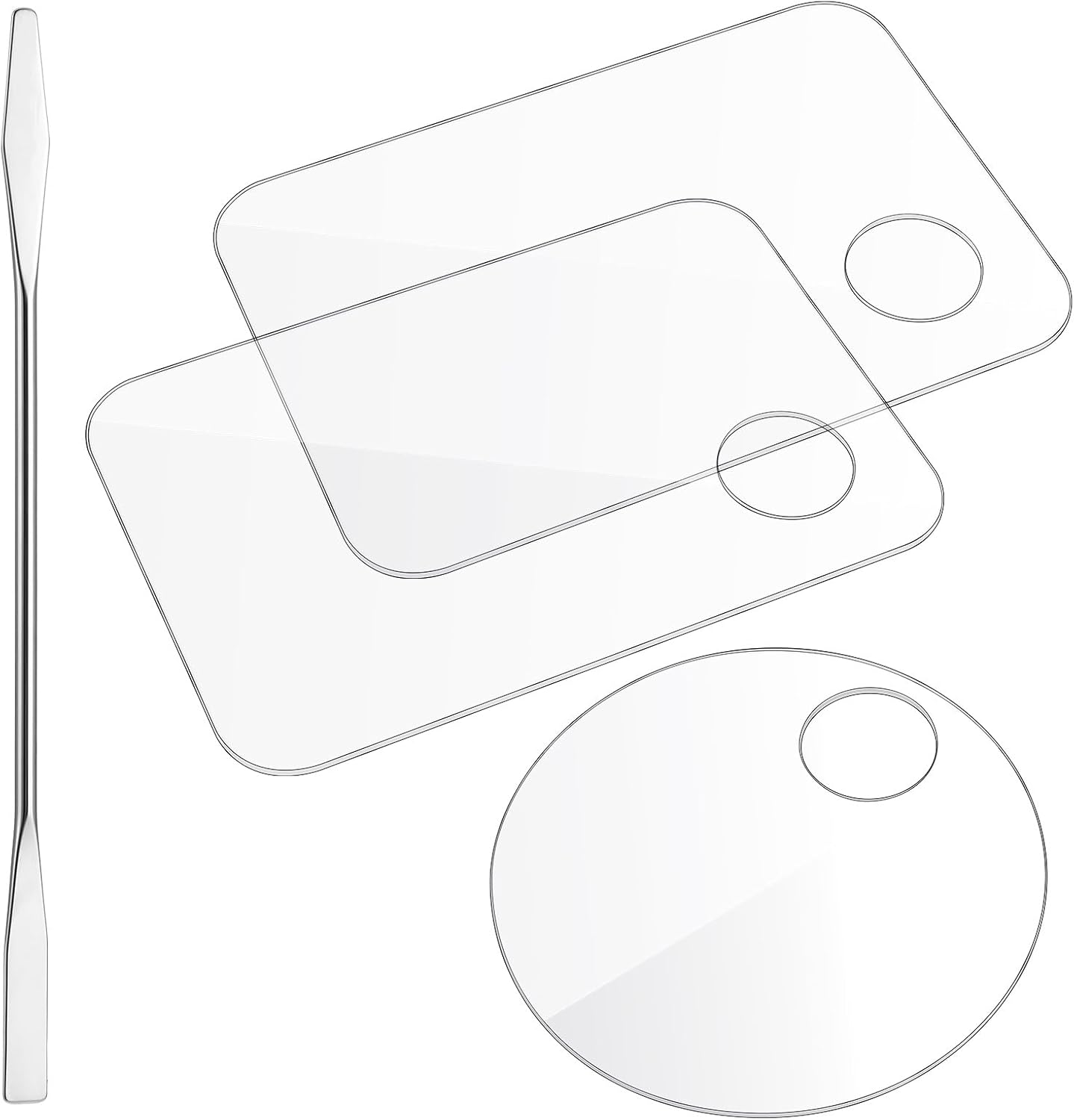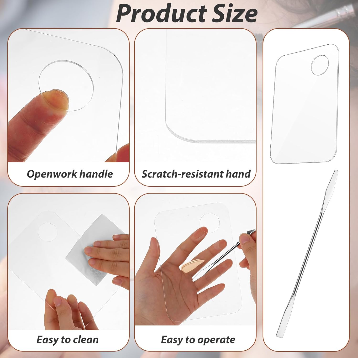 - High-quality Materials: Made with high-quality acrylic material, this makeup mixing tray and palette are friction-resistant, non-cracking, and easy to clean. The spatula is a double-ended design made of high-quality stainless steel, super sturdy.