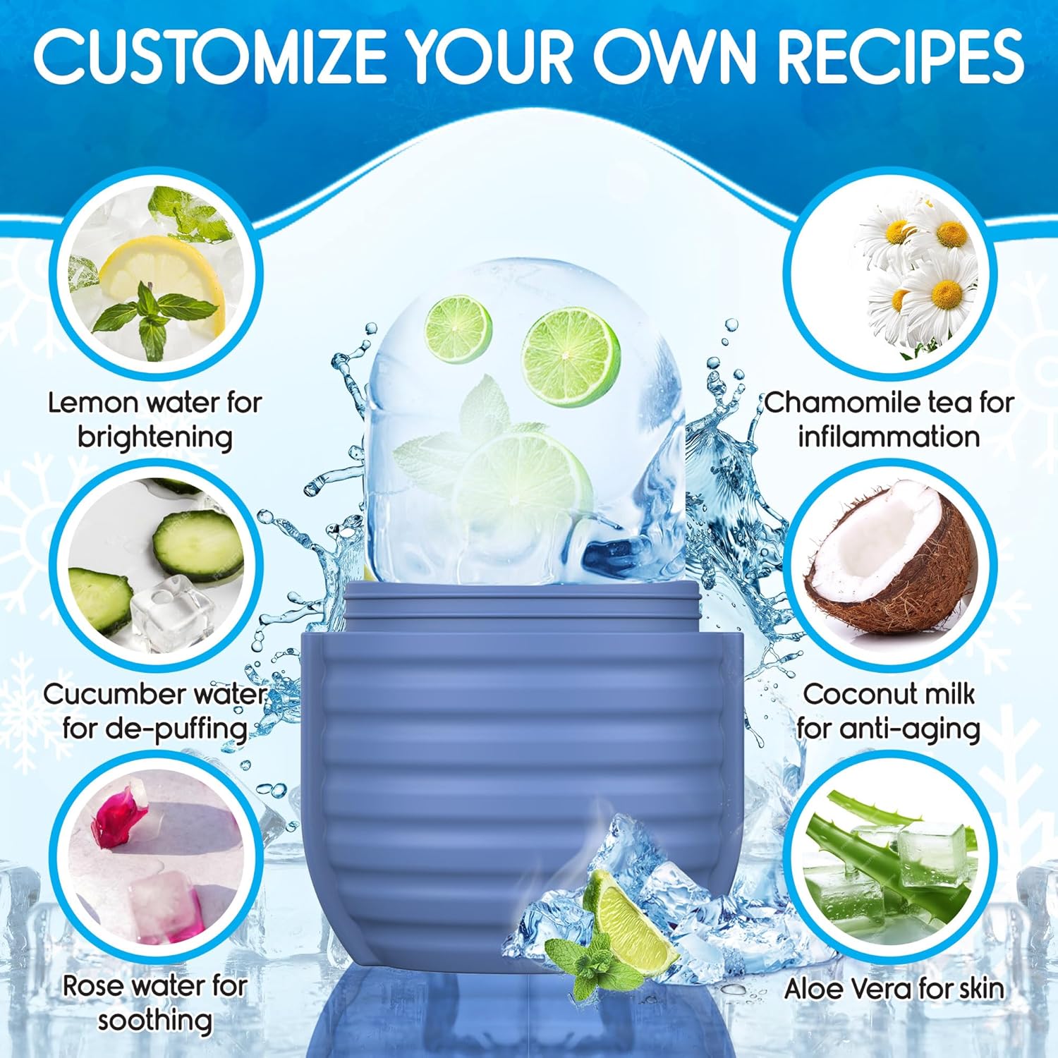 - Customize Preferences - Facial ice roller can enhance the skin care effect as per your creativity and customized formula according to your specific skin needs, such as coconut for improving skin. Even you can use a juicer to squeeze them into juice, then add water, and roses to the ice tray.
