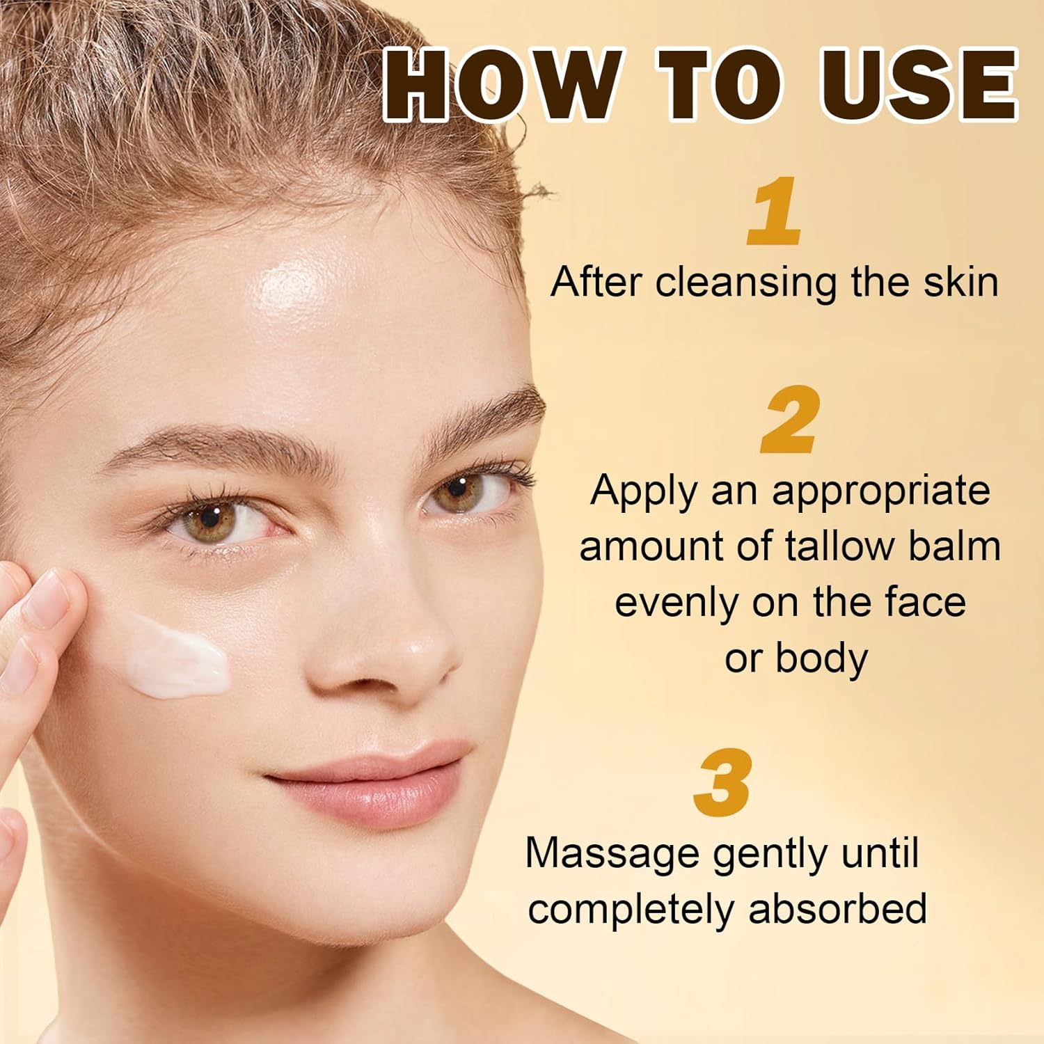 - HOW TO USE: After cleansing the skin, take an appropriate amount of beef tallow moisturizer and apply it evenly on the body or face, and then gently massage until it is completely absorbed