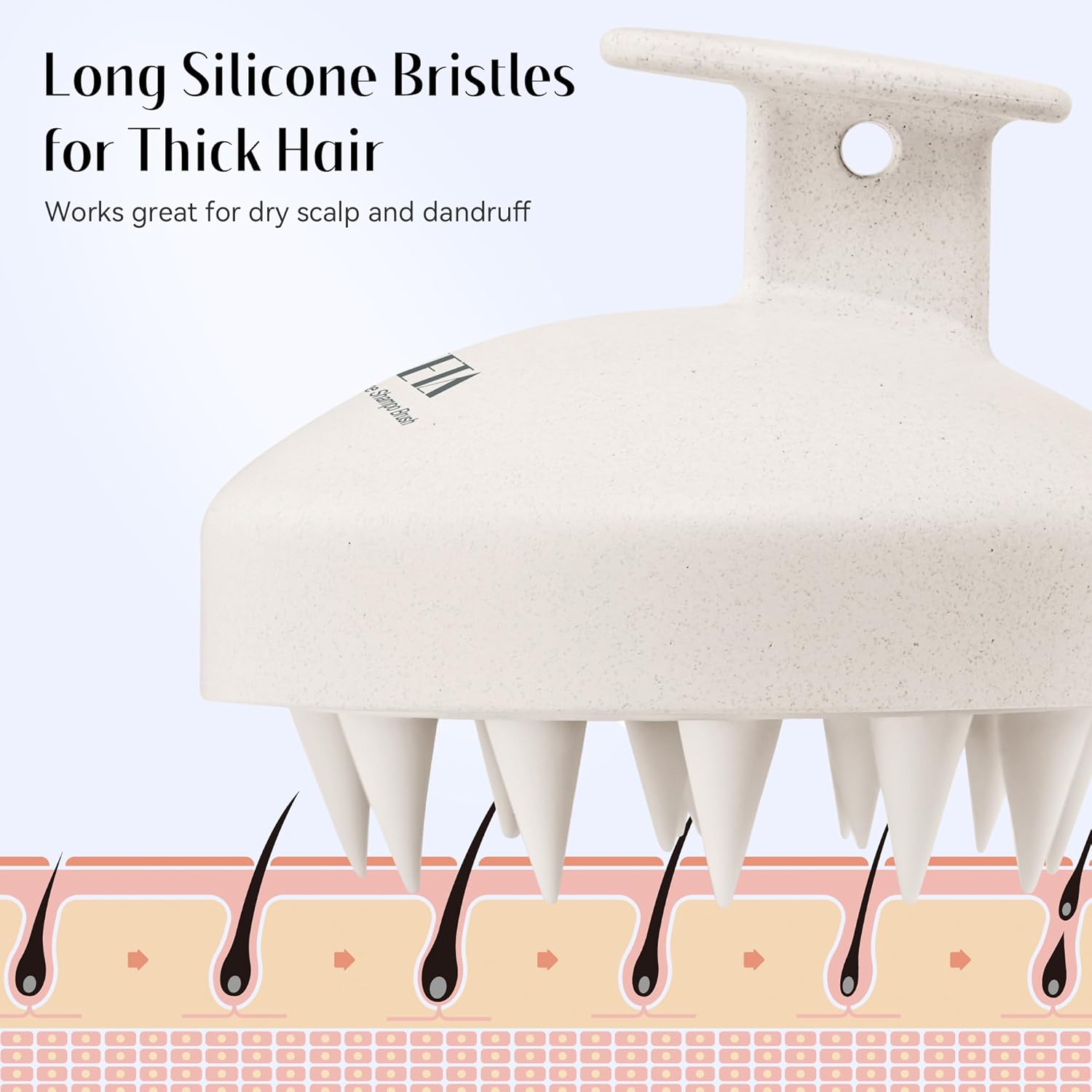 HEETA Scalp Scrubber Shampoo Brush, Scalp Massager Tool for Hair Growth, Soft Silicone Bristles for Dandruff Removal Wet Dry Use Women Men Kids Pet, Fit All Hair Types Care, Beige
