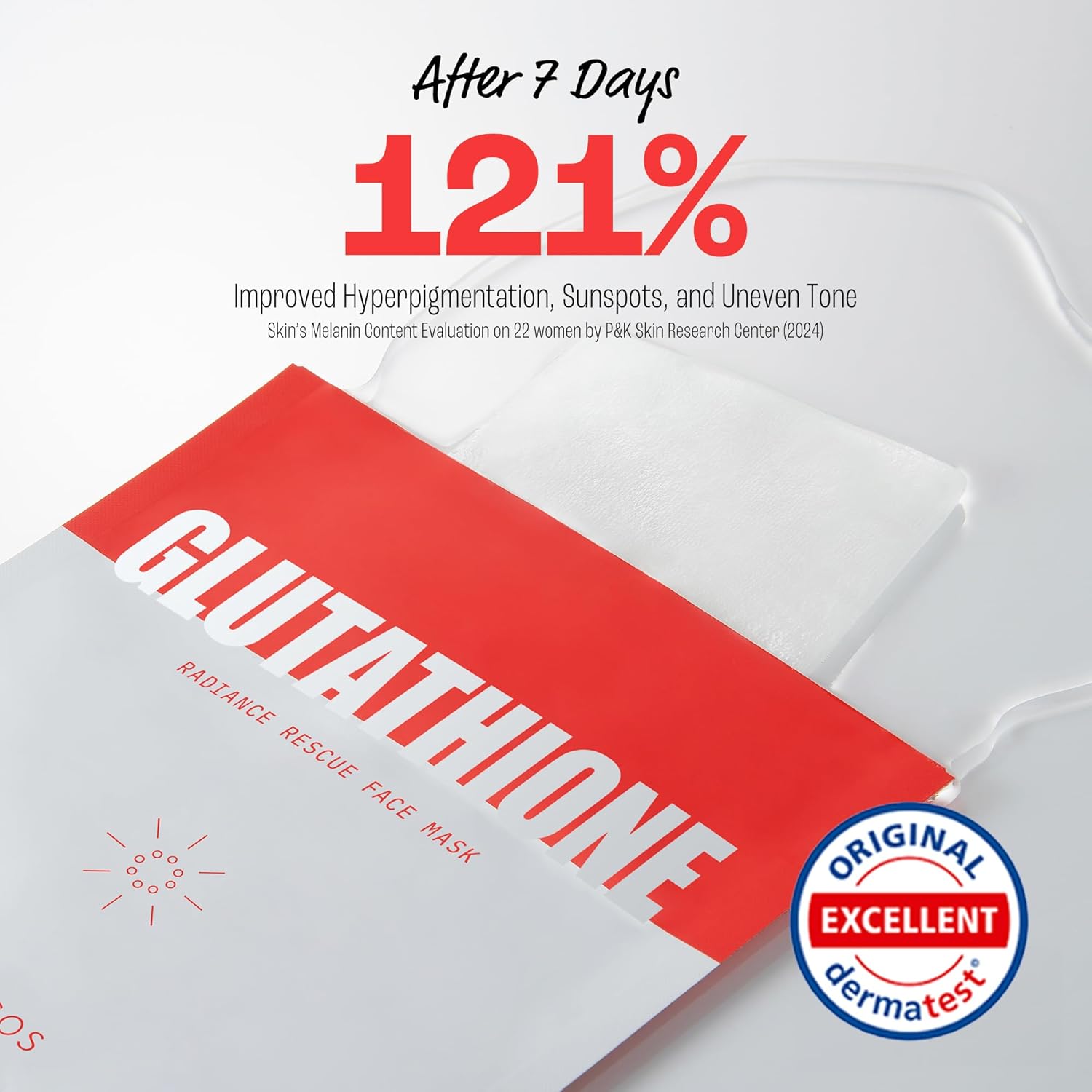 - REVIVES TIRED COMPLEXION. Unlock the rejuvenating effects of Glutathione in this Korean face mask, bringing tired skin back to life. It evens out your complexion and restores energy, leaving your skin looking refreshed, renewed, and full of vibrant charm.