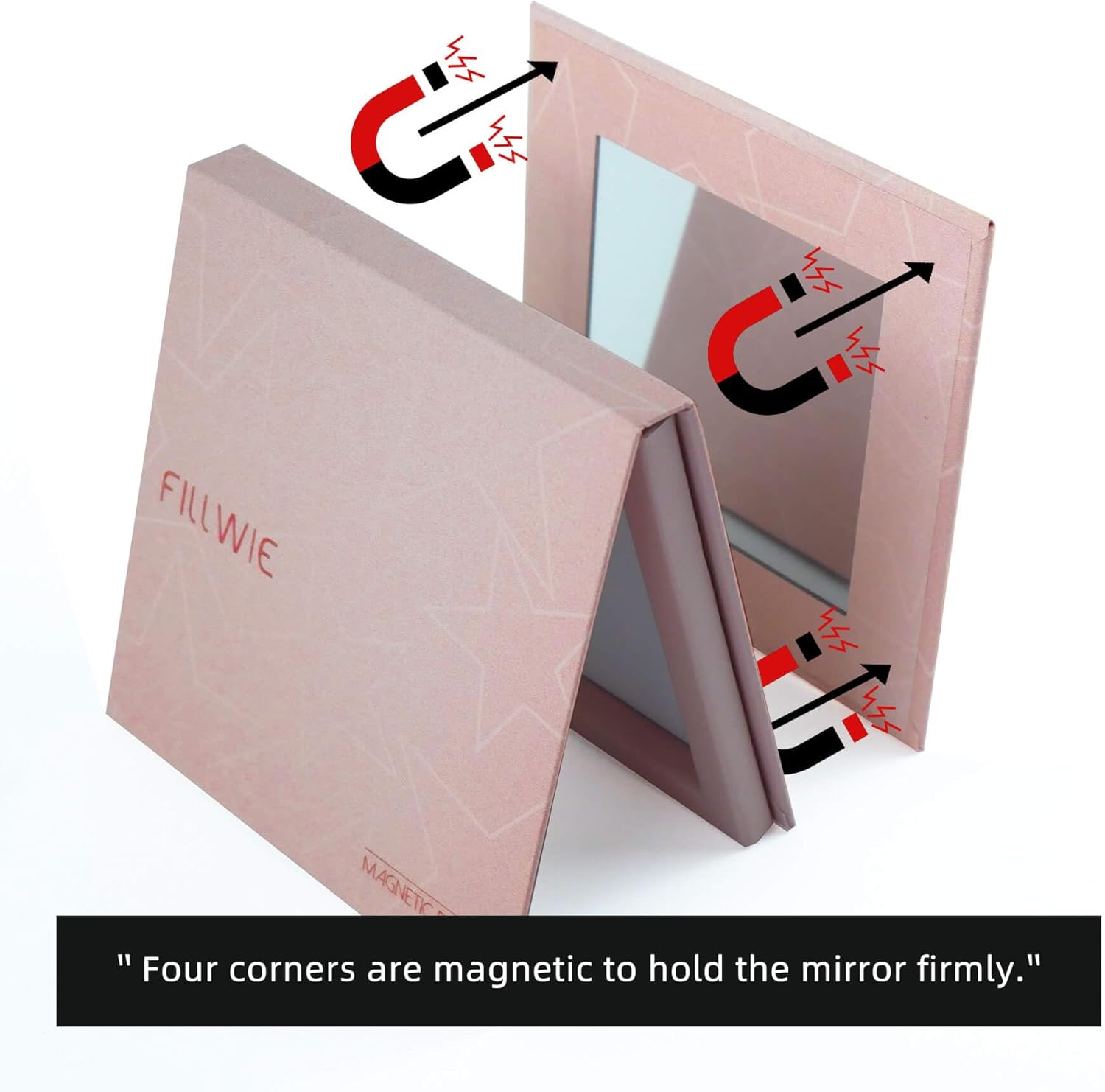 - 5. Customizable Mirror Placement Full-size mirror attaches magnetically inside or outside the palette for hands-free application. Strong magnets also secure the spatula, preventing shifting during travel or storage. Makeup not included—please verify pan size before purchase.