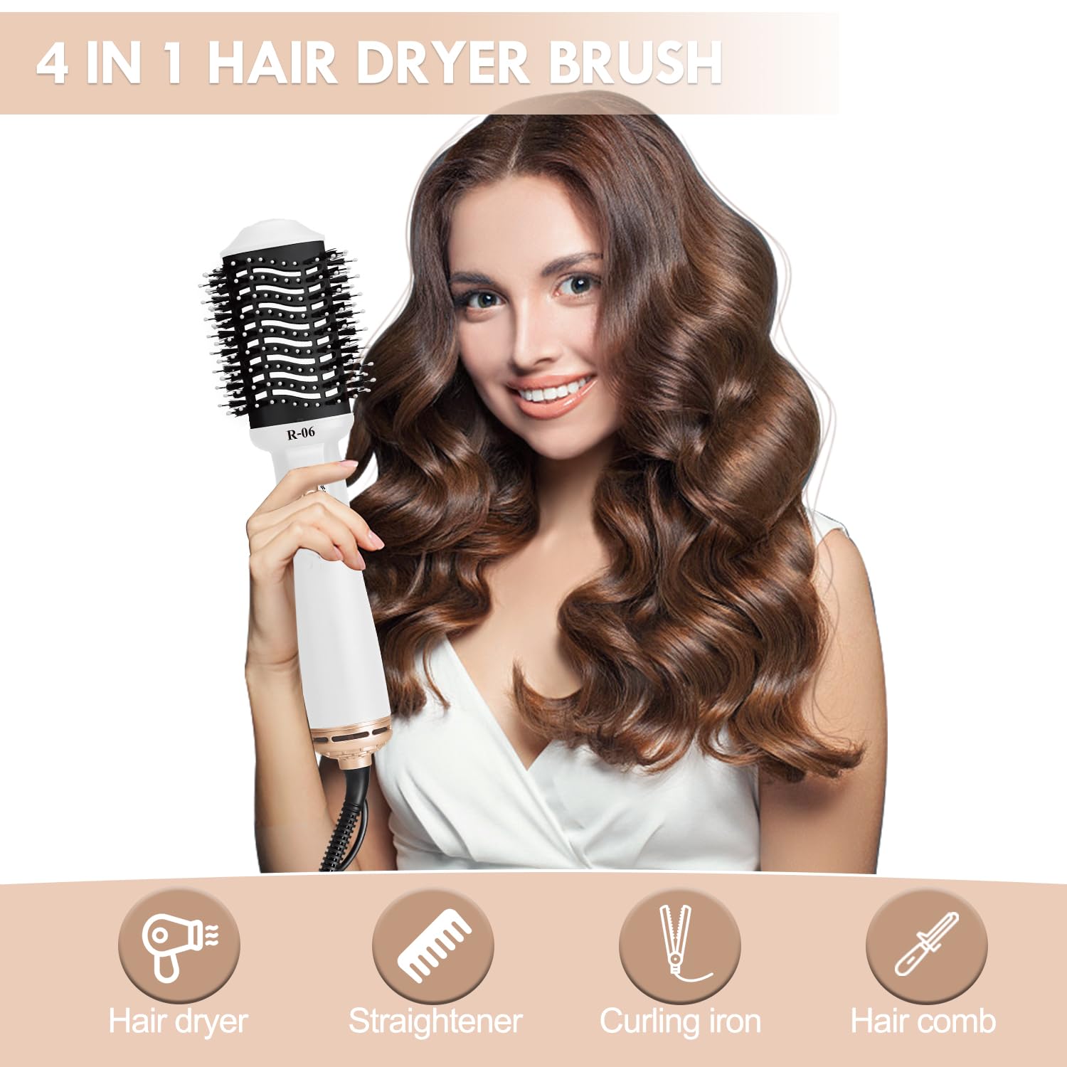 Hair Dryer Blow Dryer Brush in One, 4 in 1 Hair Dryer and Styler Volumizer with Oval Barrel, Professional Salon Hot Air Brush for All Hair Types, Bright White
