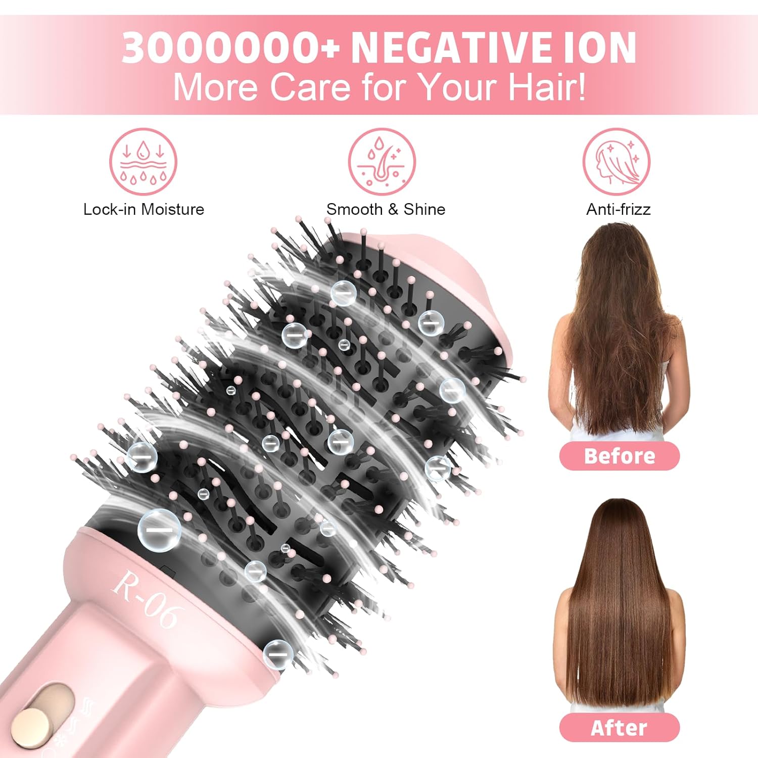 Hair Dryer Brush Blow Dryer in One, 4 in 1 Hair Dryer and Styler Volumizer with Oval Barrel, Professional Salon Hot Air Brush for All Hair Types, Bright Pink