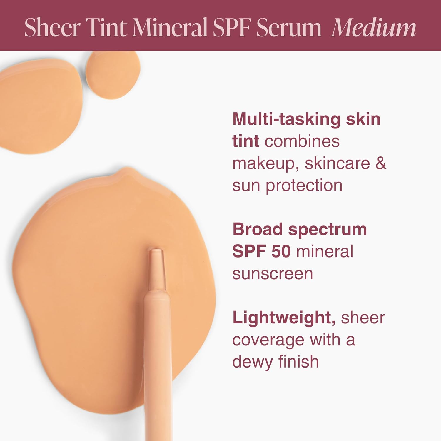 - Lightweight, Dewy Coverage: Simplify your makeup routine. This clean, mineral tinted serum gives sheer coverage and a satin, dewy finish, enhancing skin tone. The easy-to-use dropper allows precise application for quick touch-ups or all-day wear