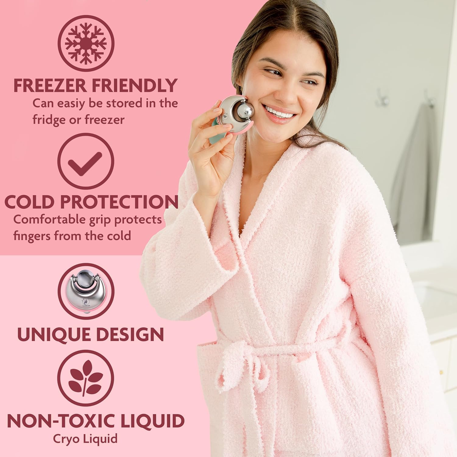 - Actually Comfortable & No Frozen Fingers: We think that self care shouldn't come with side of frozen fingers, too; That's why our ice globes for facials are designed with ergonomic U-shaped handles that create a barrier between your hands and the cold