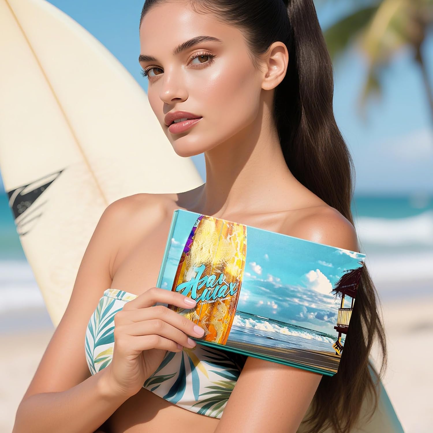 Empty Magnetic Makeup Palette, DIY Eyeshadow Pans Organizer With Mirror Inside, Frosted Finish Embossed Art Paper Makeup Organizer (Summer Day)