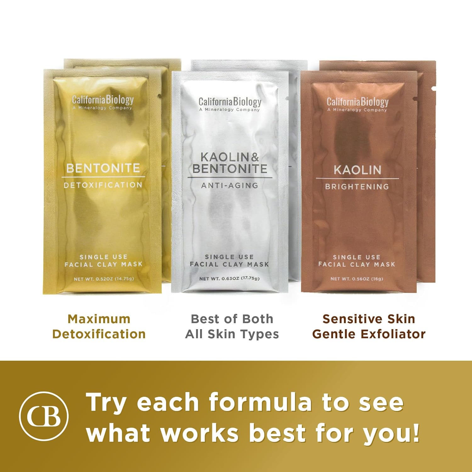 California Biology Clay Mask Variety Pack | Indian Healing Clay Assortment with Kaolin, Calcium Bentonite, and Kaolin & Bentonite | Deep Pore Cleansing Facial Mask & Clay Body Scrub | 6 Count