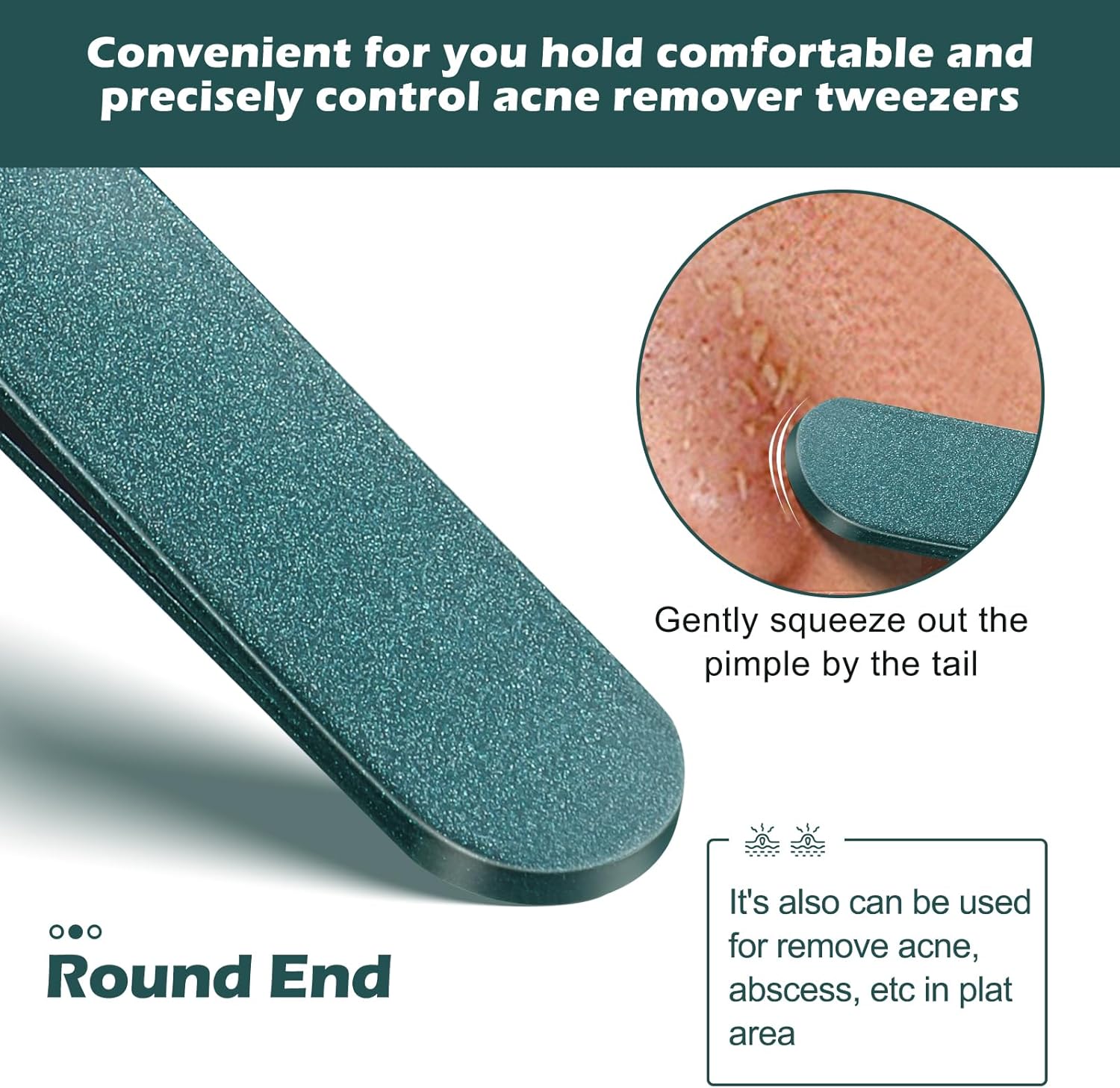 WSYUB Upgrade Professional Facial Blackhead Remover Tweezers, Ingrown Hair Tweezers,Extractor Acne Removal, Pimple Popper Tool,Green