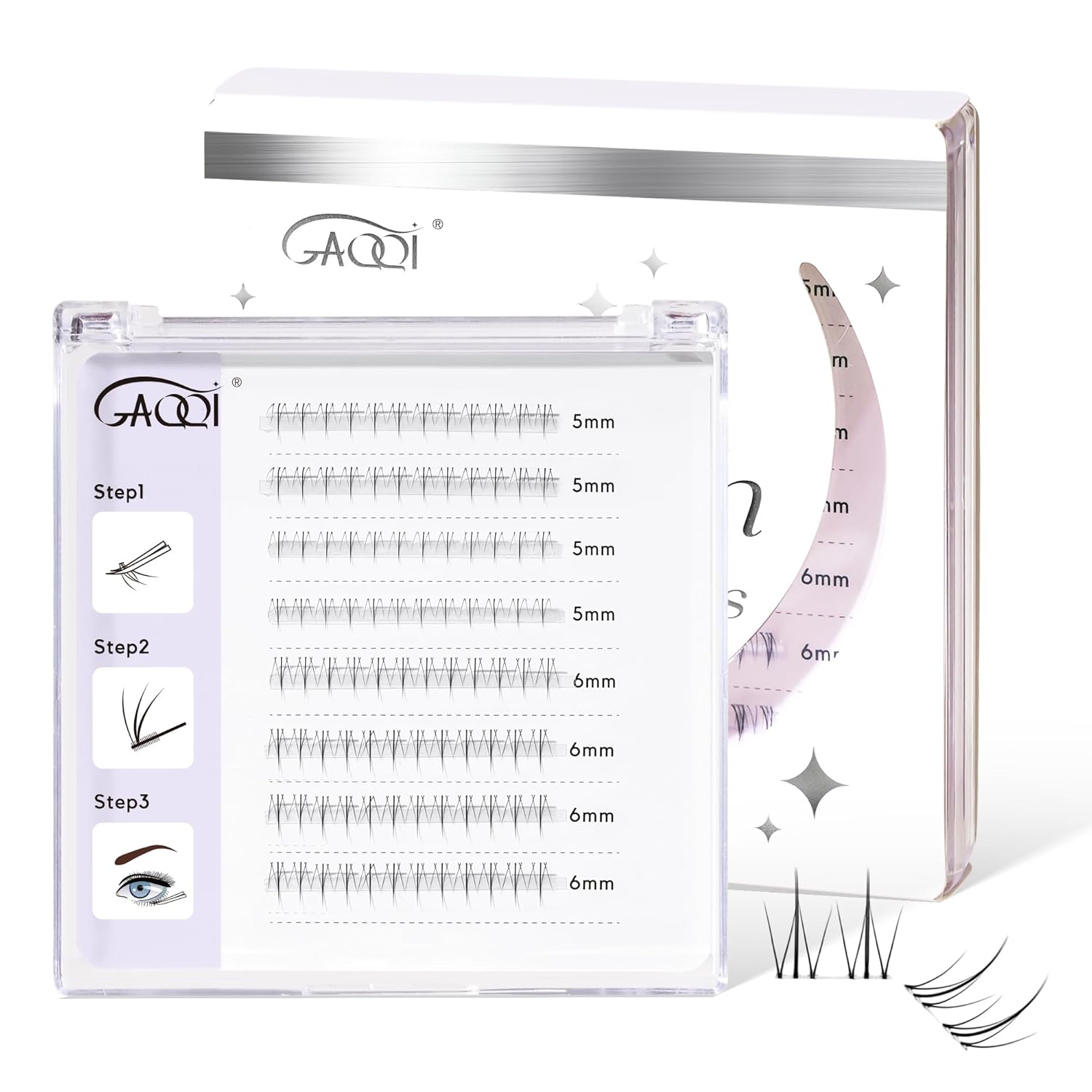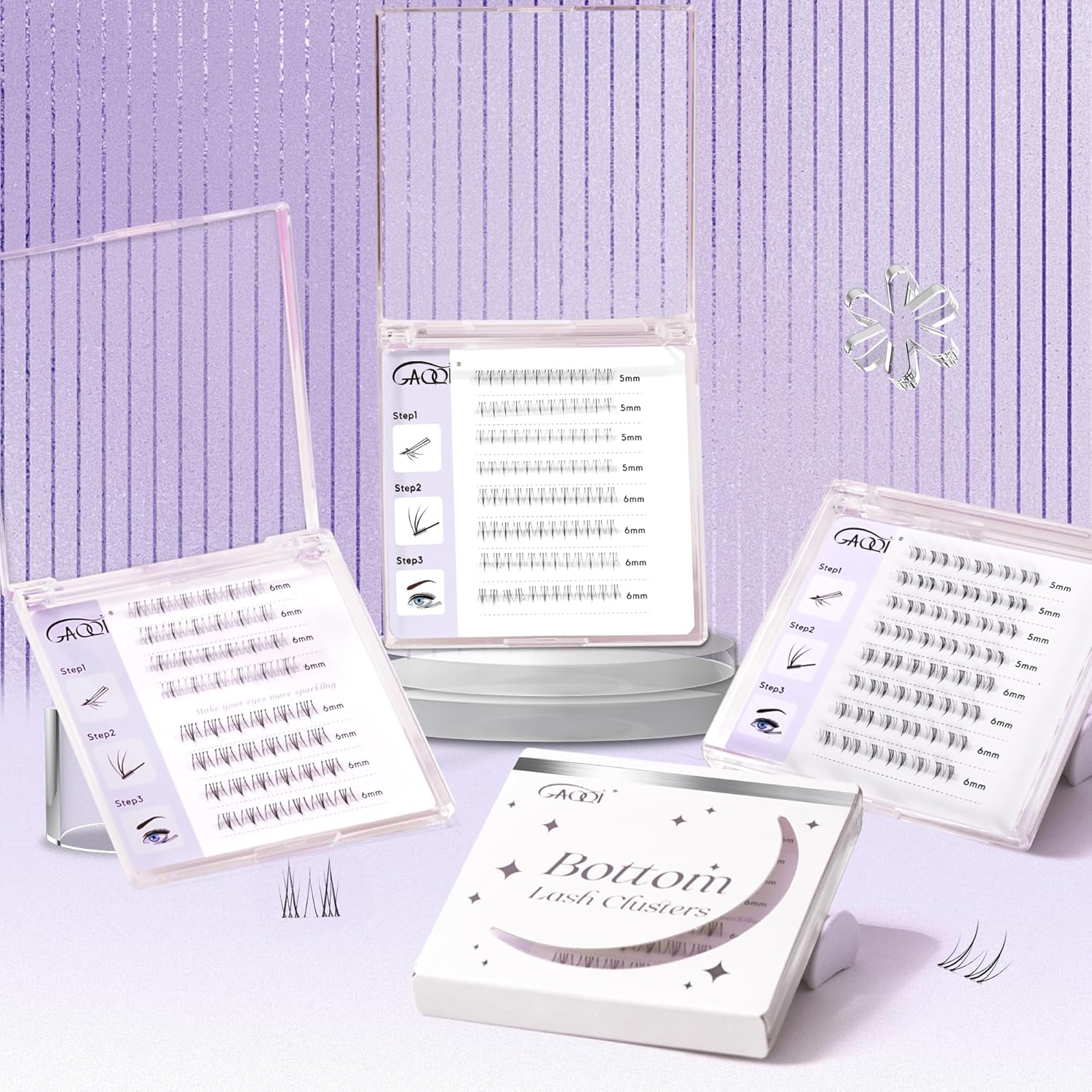 - SPARKLE YOUR EYES:There are 3 options of bottom lash clusters in GAQQI. B10:natural and everyday look; B11:spiky and manga style;B36+B38: natural and thick 2 styles mixed.