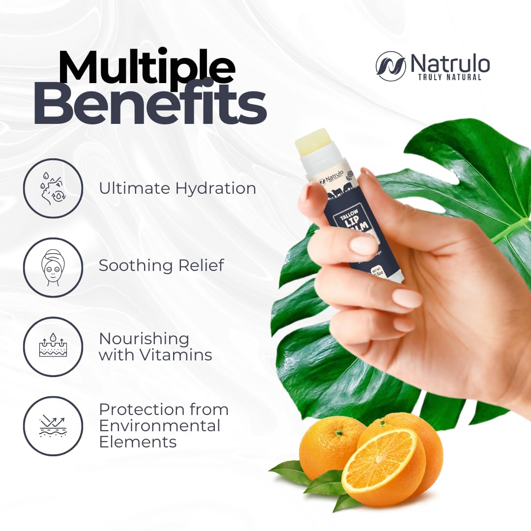 - INTENSELY HYDRATING FORMULA: Immerse your lips in moisture with our grass-fed organic beef tallow lip balm with orange flavor. Crafted with natural fats, akin to those in human skin, it maintains your lips' moisture barrier for enduring hydration and velvety softness.