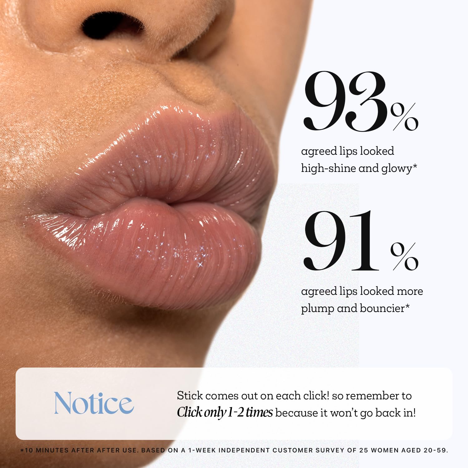 - 💗HOW TO USE: Please check, on one click the stick COMES OUT! Make sure you click "once" at a time because it won’t go back in. It’s a quick, easy and hygienic Honey Melting lip for you.