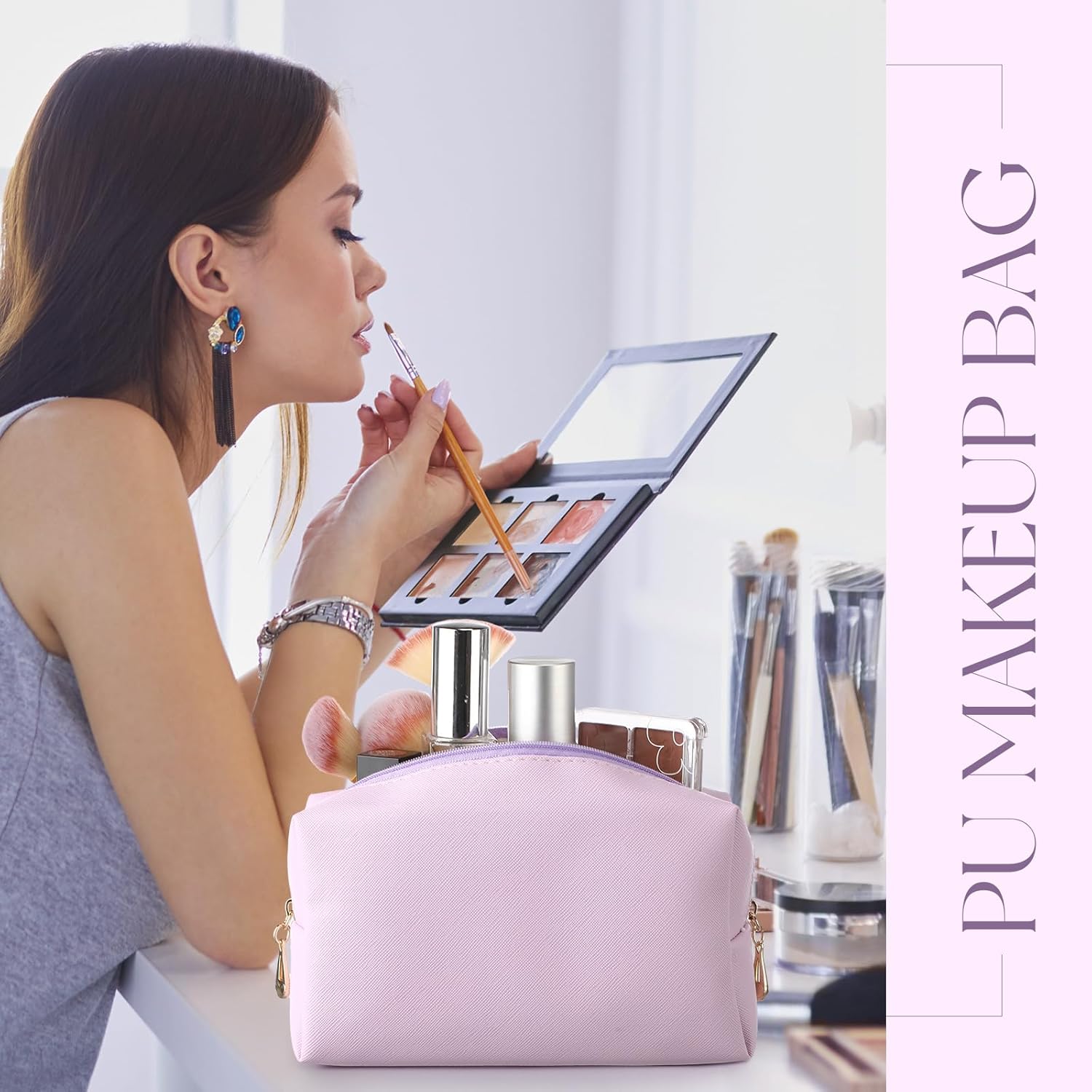 - Waterproof and Easy to Clean: the cosmetic pouch is made of quality PU leather material, safe, soft, lightweight, waterproof and reliable, not easy to break or fade, which can apply to avoid internal items get wet, you can use it for a long time; Just wipe the stain with a damp cloth, easy to clean, saving your time and energy