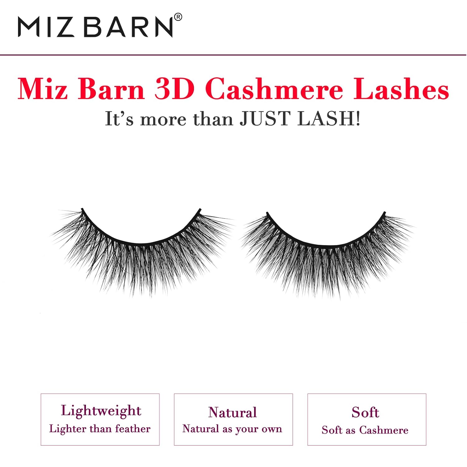 - 【CRUELTY-FREE】Miz Barn 3D CASHMERE Lashes, it is 100% CRUELTY-FREE. It’s MORE THAN JUST LASH!