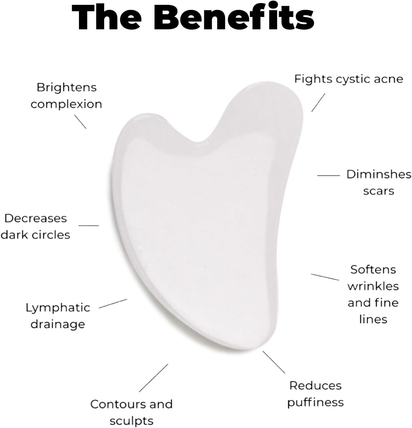 - 2-in-1 Skincare Set – Includes a facial roller for gentle massage and a Gua Sha board for deeper contouring, improving skin elasticity and reducing the appearance of fine lines.
