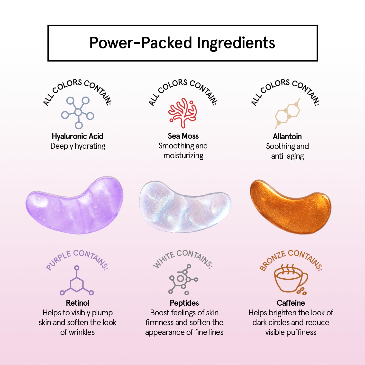 - Repair In Your Sleep - Our under eye masks for dark circles are powered by an advanced blend of sea moss, ceramide, and fatty acids that restore the delicate skin of your under eyes, so you can wake up fresh. Our gel eye mask are your new secret.