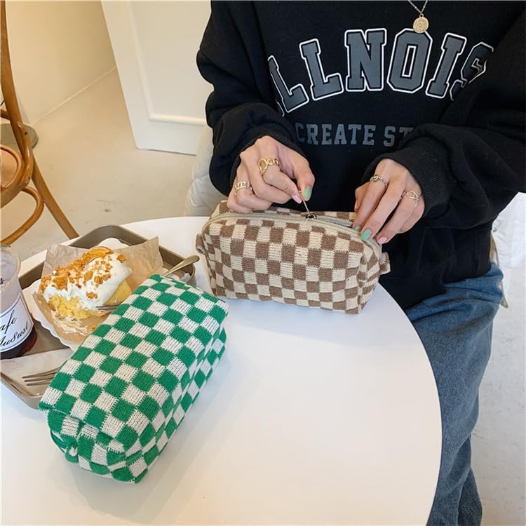 PAZIMIIK Checkered Makeup Bag for Purse Portable Zipper Make Up Pouch Small Cosmetic Case for Travel Accessories (6PCS Green)