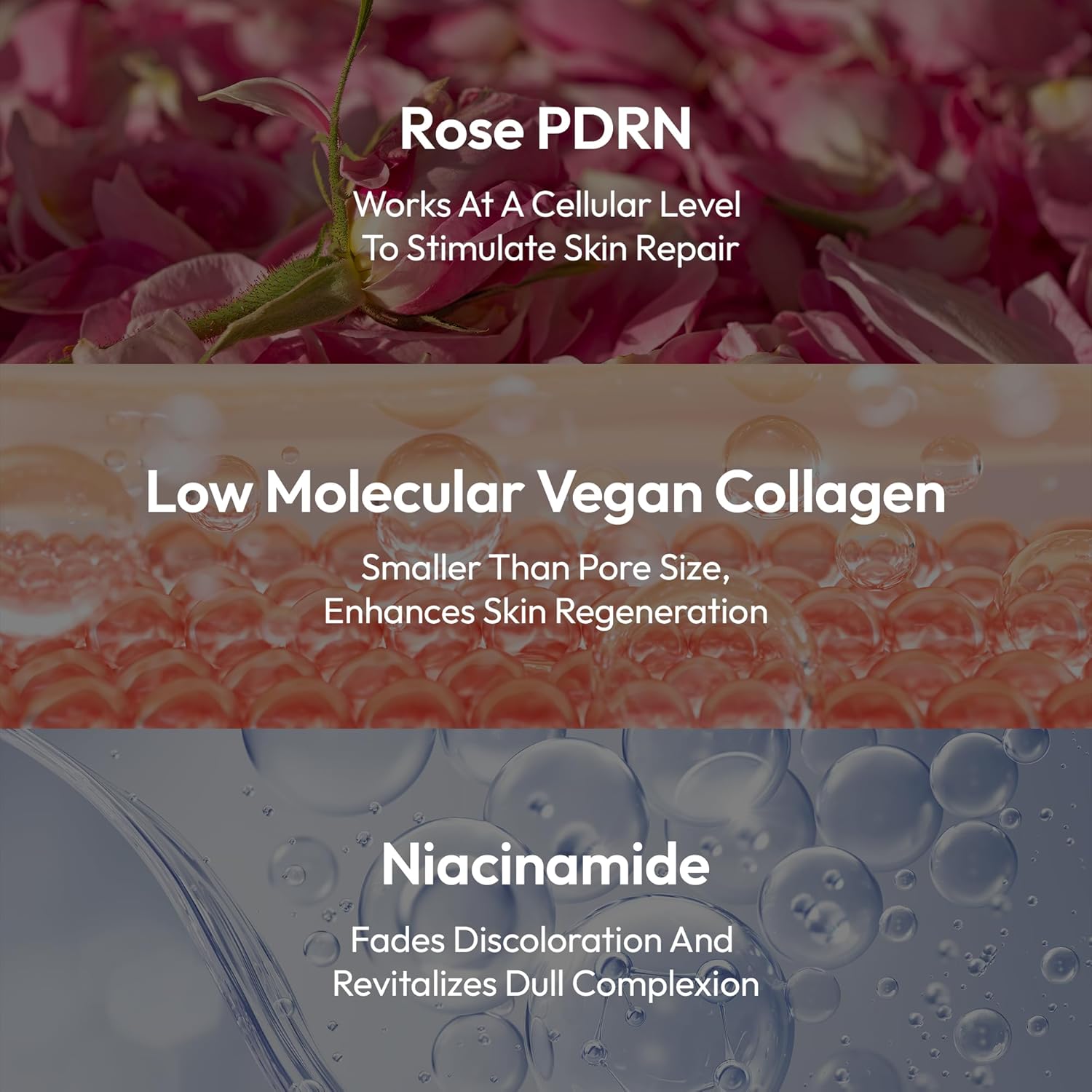 - OVERNIGHT COLLAGEN REVIVAL. The future of collagen is here: Low Molecular Hibiscus Collagen, T3 Collagen, And Camellia Collagen Exosome for some serious rejuvenation effects! Paired with vegan PDRN from vitamin C and E-rich Roses, this luxurious blend creates a synergy that transforms your skin. The only collagen mask your complexion will ever crave!