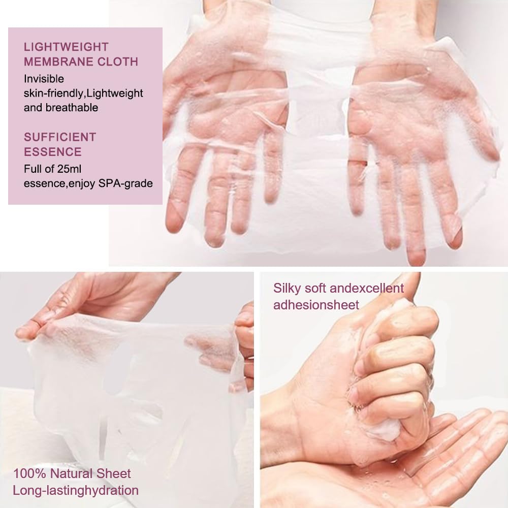 - FACIAL SKINCARE SHEET MASK:This premium women's skin care mask is silky smooth,moisturizing,refreshing and has increased efficacy and adhesion to block evaporation and lock in moisture for a hydrating effect that lasts all day