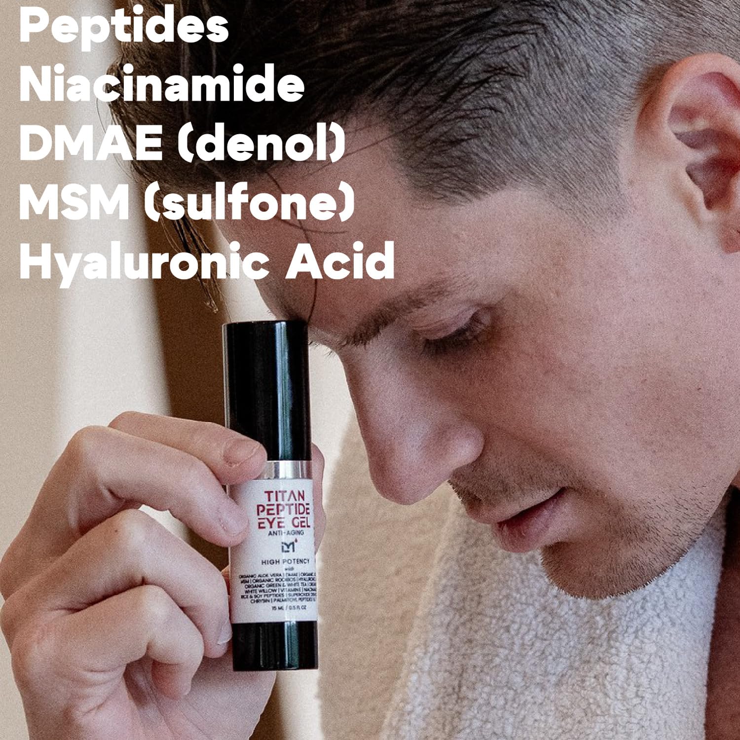 - Potent Peptides Packed in Every Drop: The 4 peptides in this bags under eyes treatment for men lead the anti-puffiness charge; It's also formulated with other well-known, and maybe a few esoteric, best eye bag remover anti-aging ingredients like DMAE, MSM, Hyaluronic Acid, Niacinamide, and Aloe; our best eye bags treatment for men