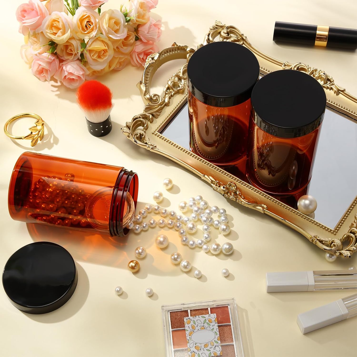 Patelai 4 Pieces Round Wide-mouth Leak Proof Plastic Container Jars with Lids for Travel Storage Makeup Beauty Products Face Creams Oils Salves Ointments DIY Making(12 Ounce,Amber)