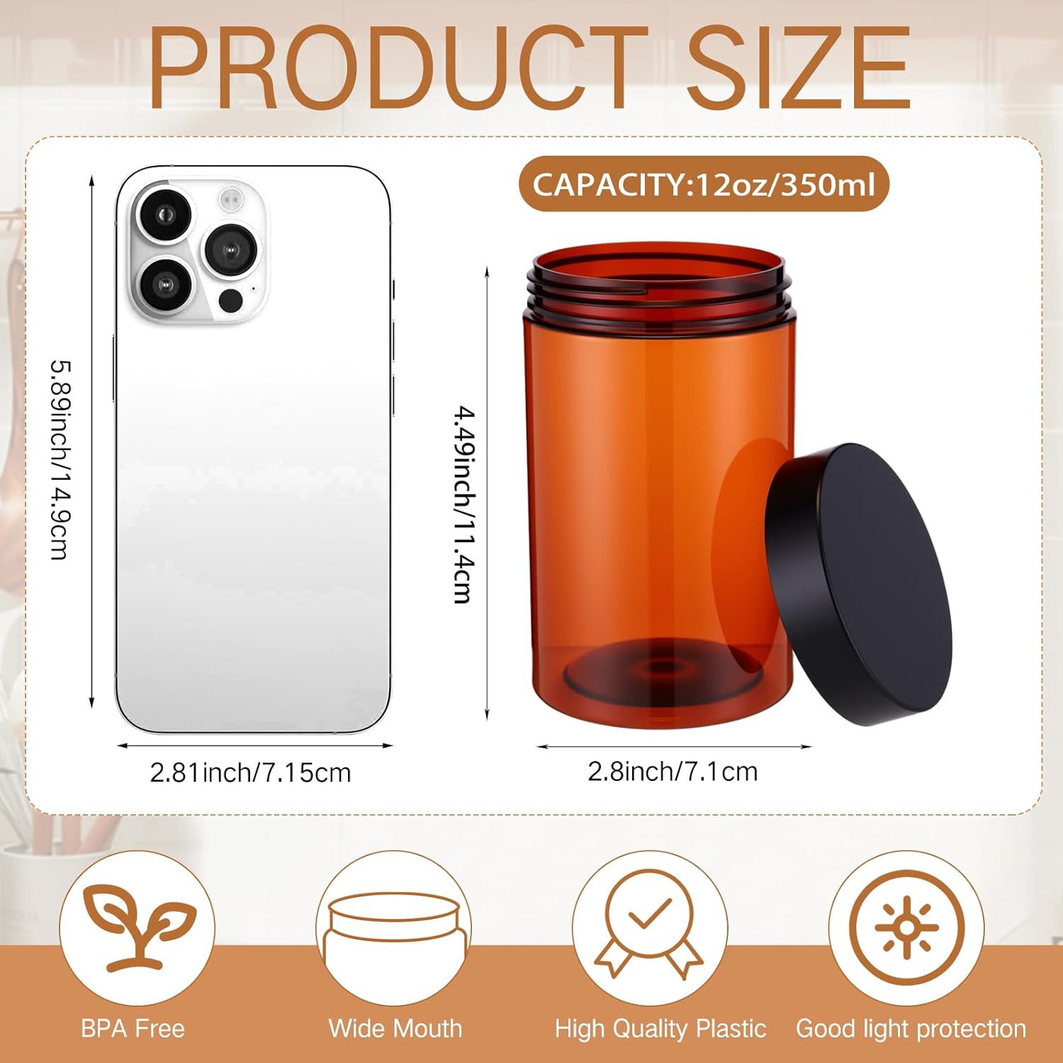 - What You Receive: there are 4 pieces plastic jars with black screw-on lids; They are reliable and refillable, measuring about 12 oz in capacity