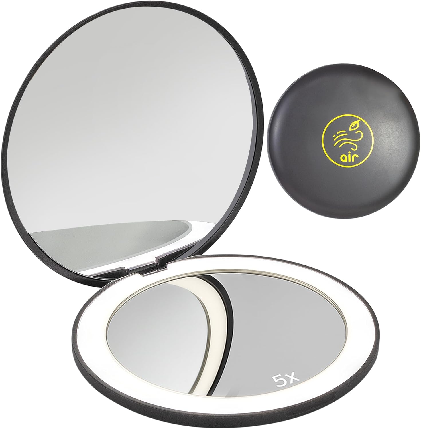 LanJo Lighted Compact Mirror with 1X/5X Magnification, Stepless Dimming & 3 Adjustable Light Settings, Rechargeable Makeup Mirror for Purse, Travel & Gifts – Air Sign Zodiac Design – Charcoal Grey