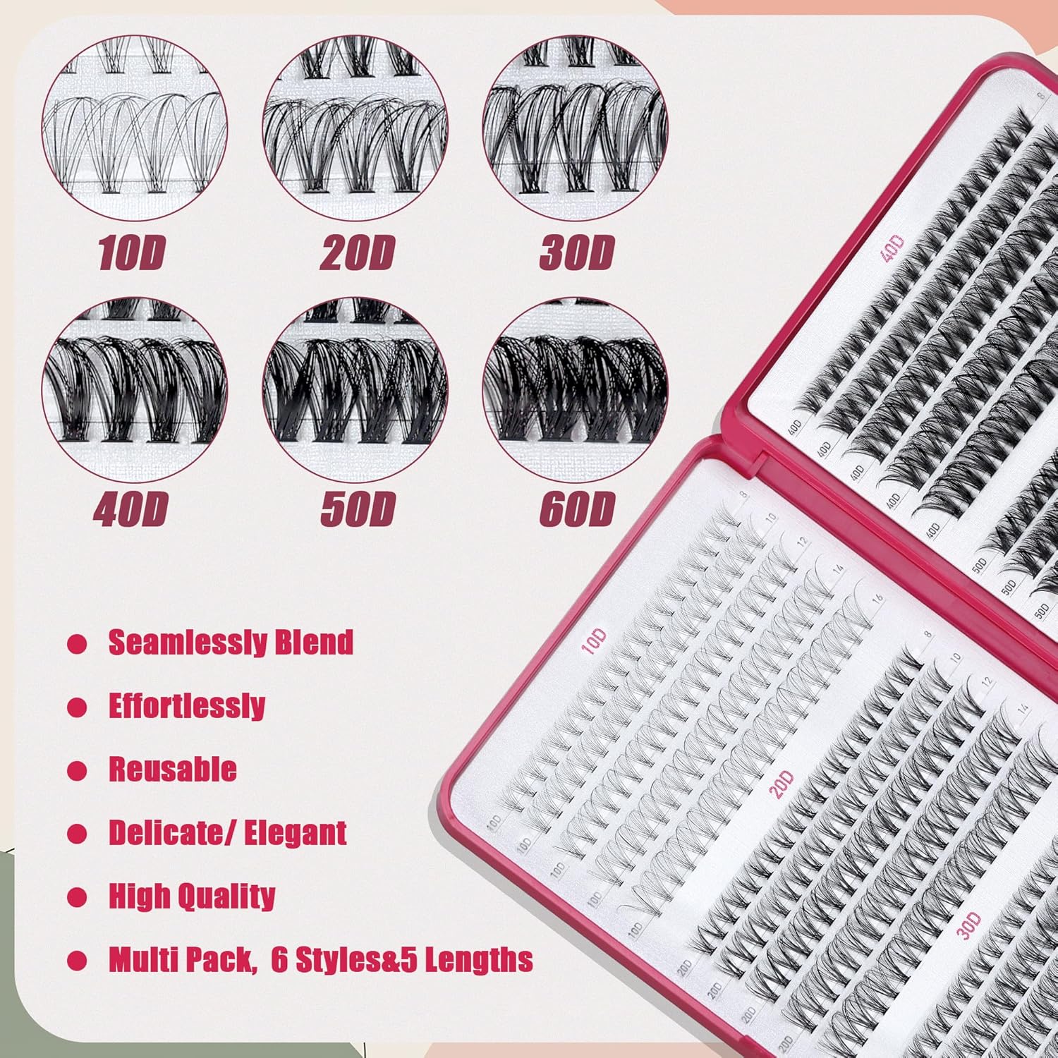 - Easy-to-Achieve Lash Extension Look:You can use different lengths of eyelash clusters to create more style possibilities - cat-eye, fan-eye, doll-eye, dramatic-eye, natural, fluffy, and more.