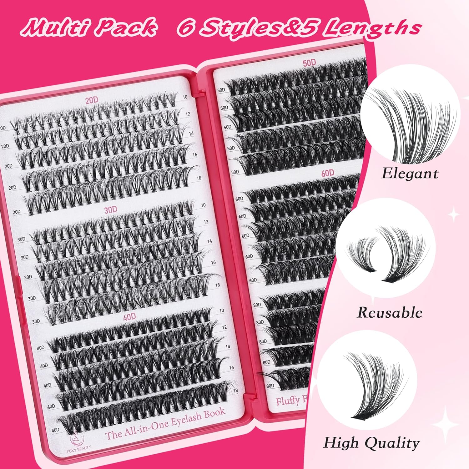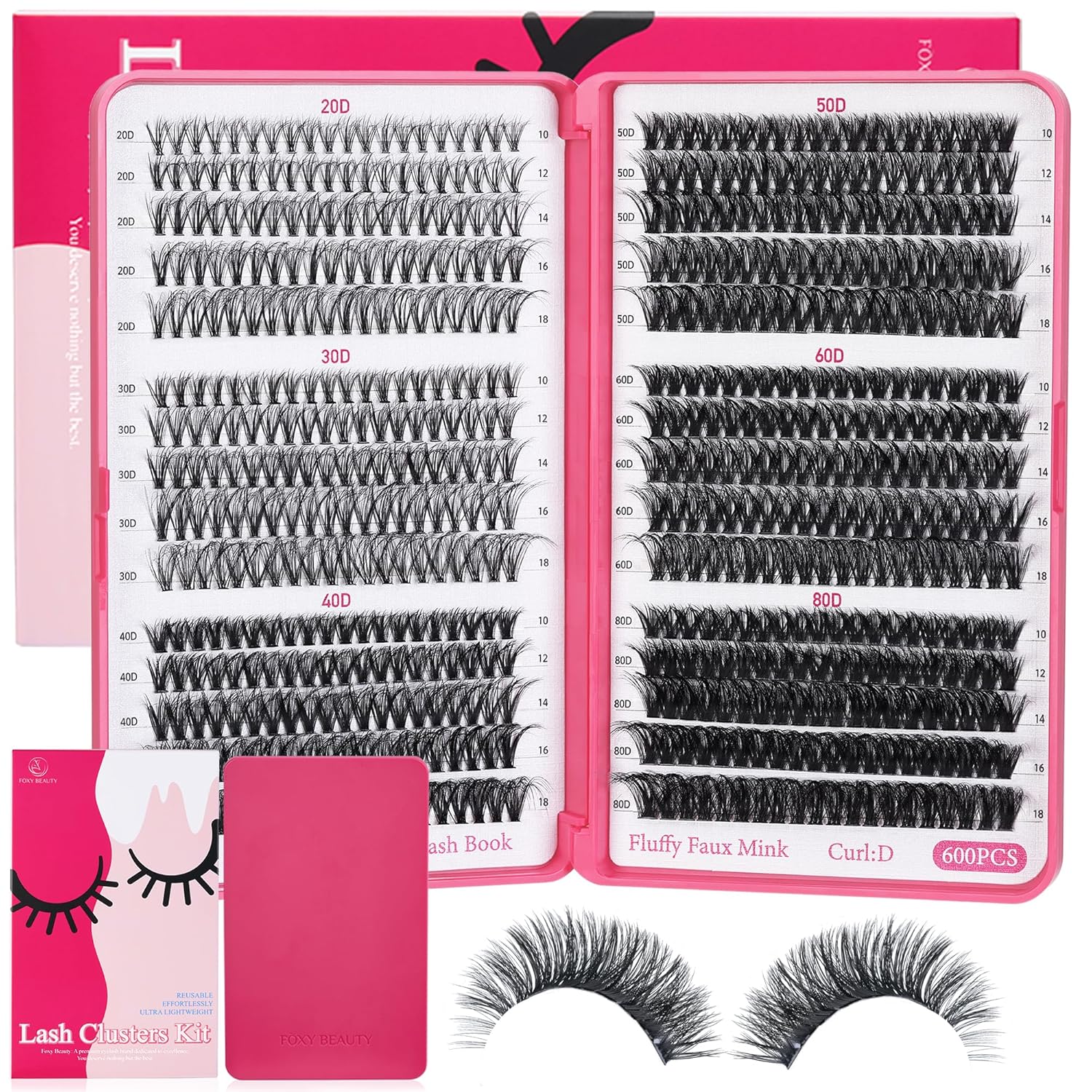 - Choose HIGH CLASS False Eyelashes, Where TOP QUALITY Meets Style :Explore a wide range of captivating lash styles to complement your unique personality. Available in 600PCS Clusters options and featuring 6 Styles & 5 Lengths.Foxy Beauty lash extensions offer a wide variety of choices to achieving the same eyelash effect as the salon