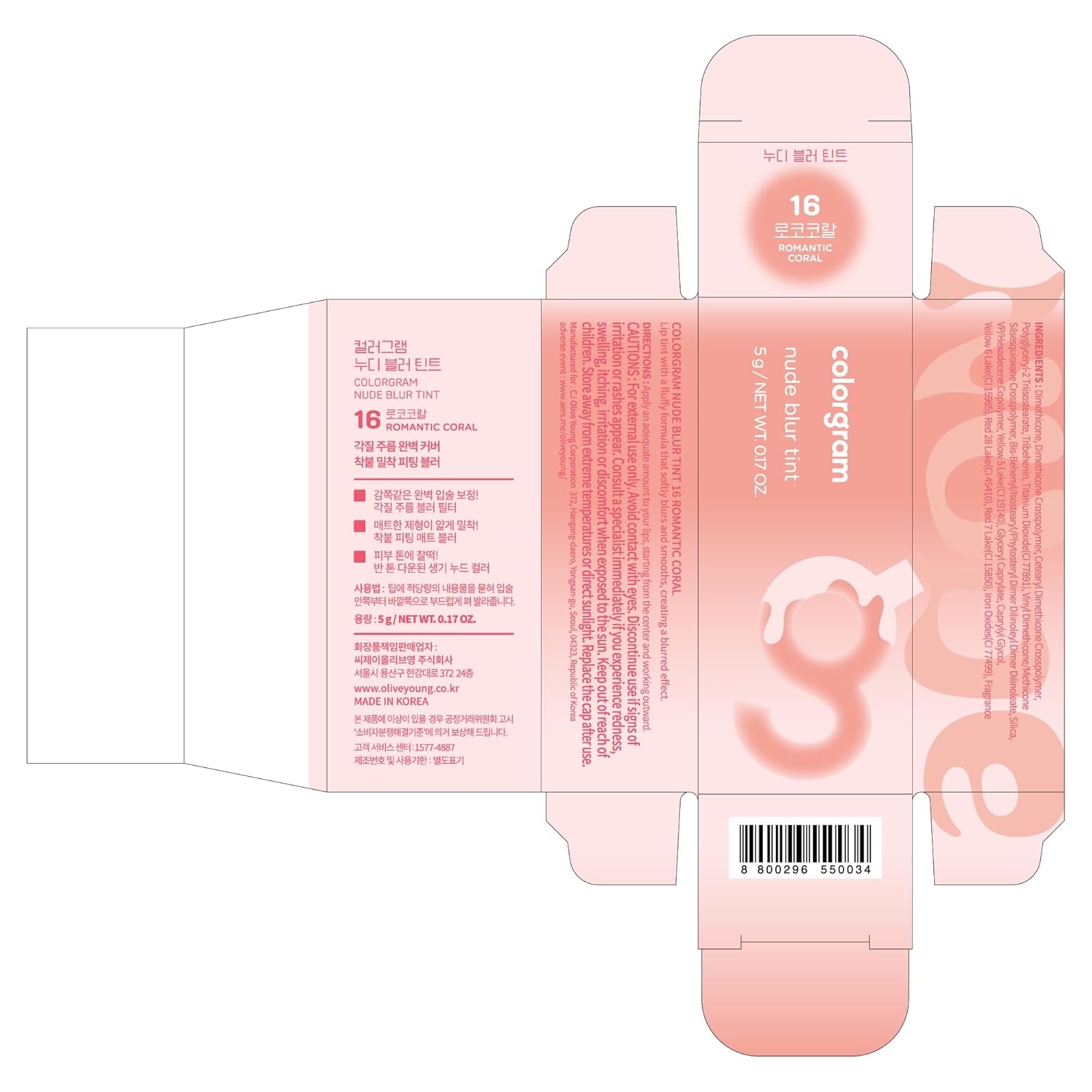 COLORGRAM NUDE BLUR TINT 16 ROMANTIC CORAL | Soft Velvet Matte Liquid Lipstick & Cheek Tint | Lightweight Blurring Tint for a Smooth & Airbrushed Finish | Long-Lasting & Non-Sticky Formula