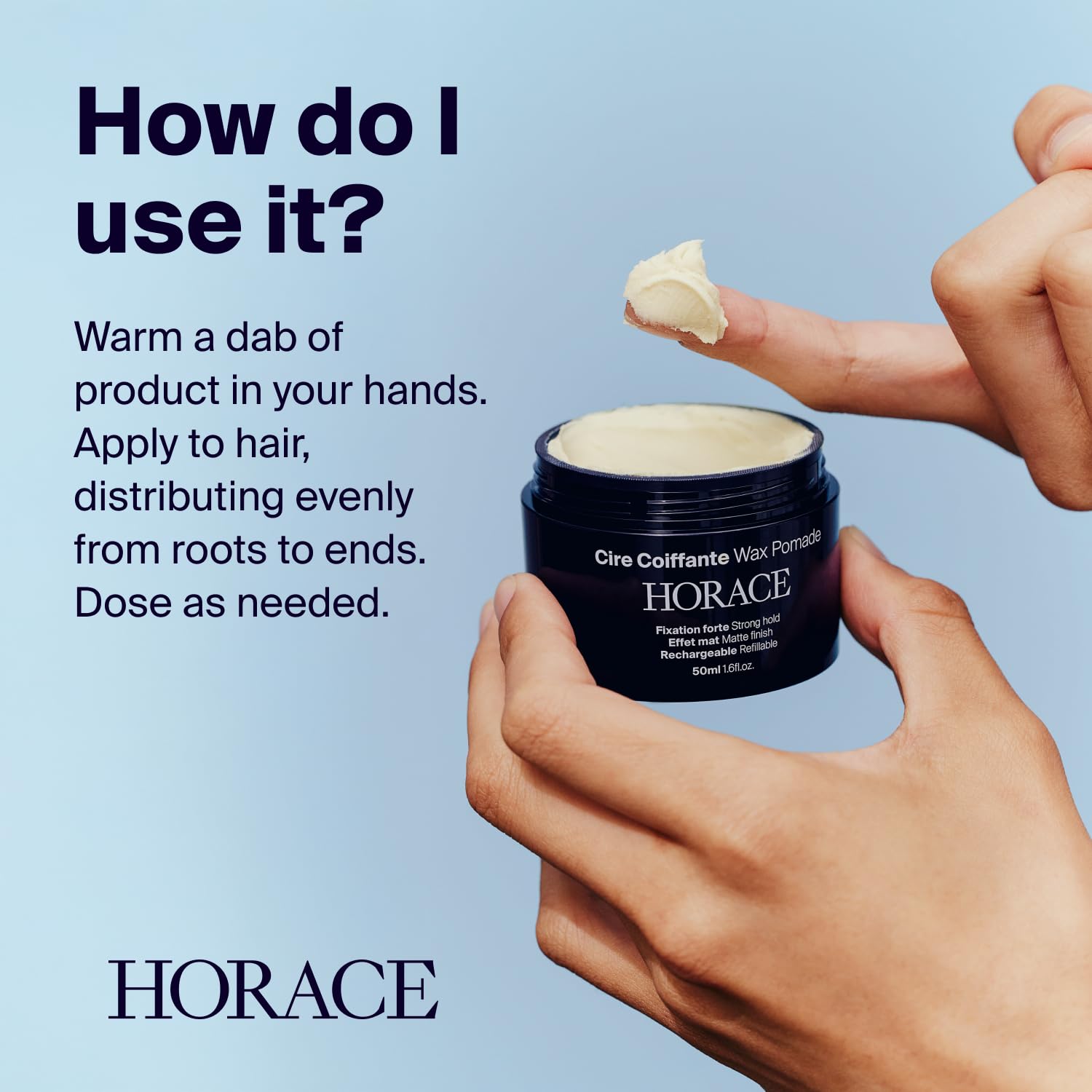 HORACE Hair Wax Pomade for Men – Strong & Long-Lasting Hold – Matte Finish – No Silicones or Mineral Oils – Woody Scent – Refillable, 50 ml