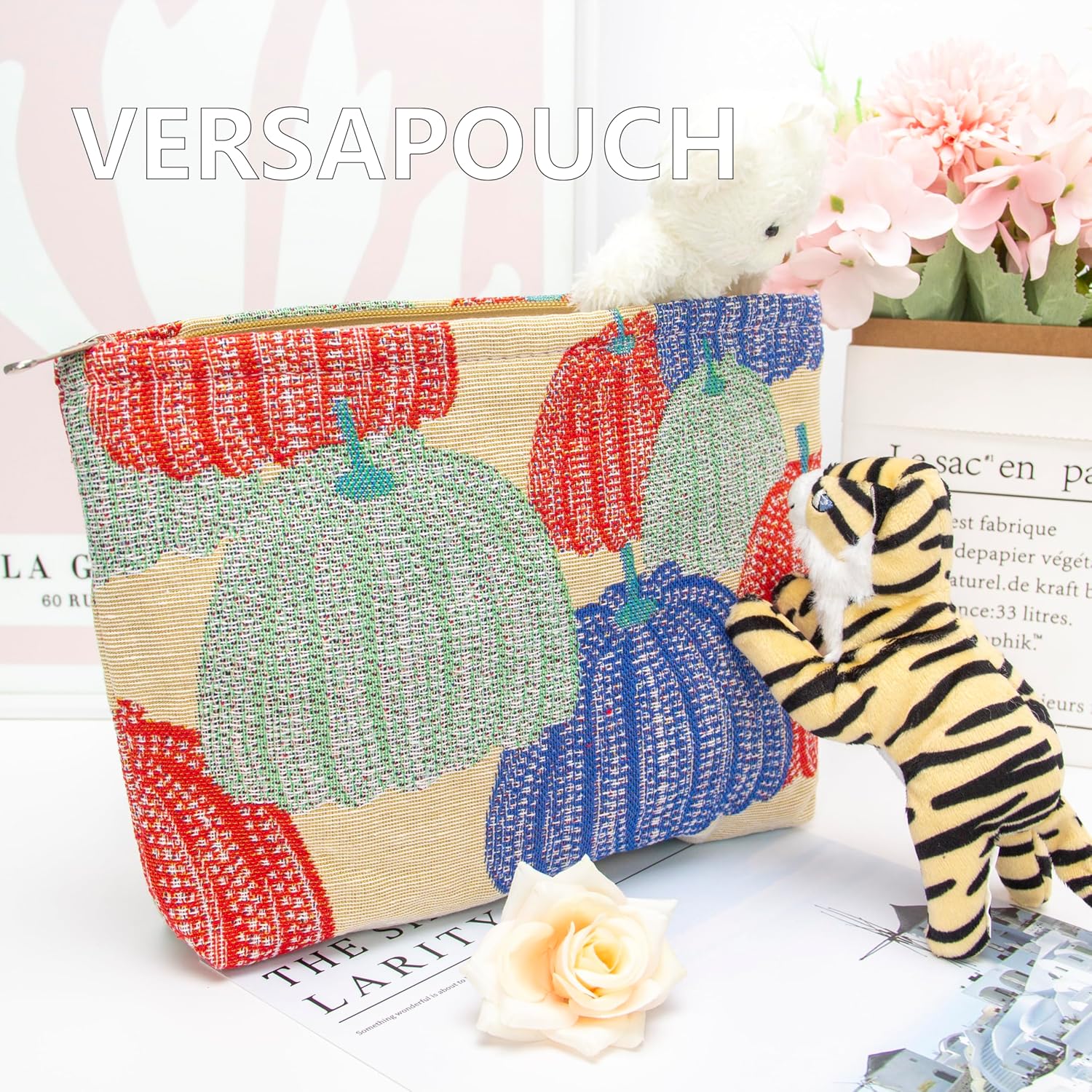 PAZIMIIK Makeup Bag Large Cotton Zipper Pouch for Purse Travel Canvas Make Up Organizer for Women Cosmetic,Linen Colorful