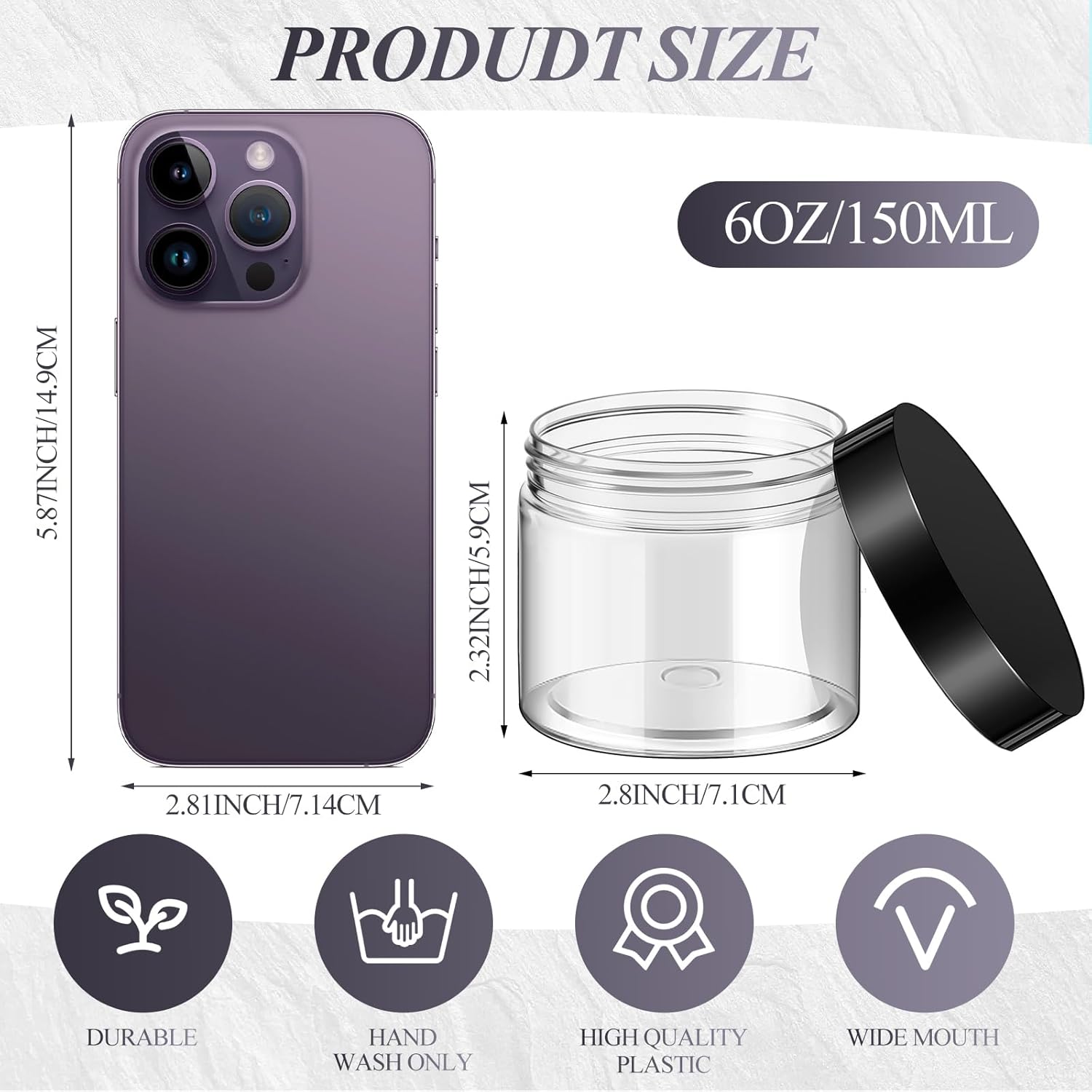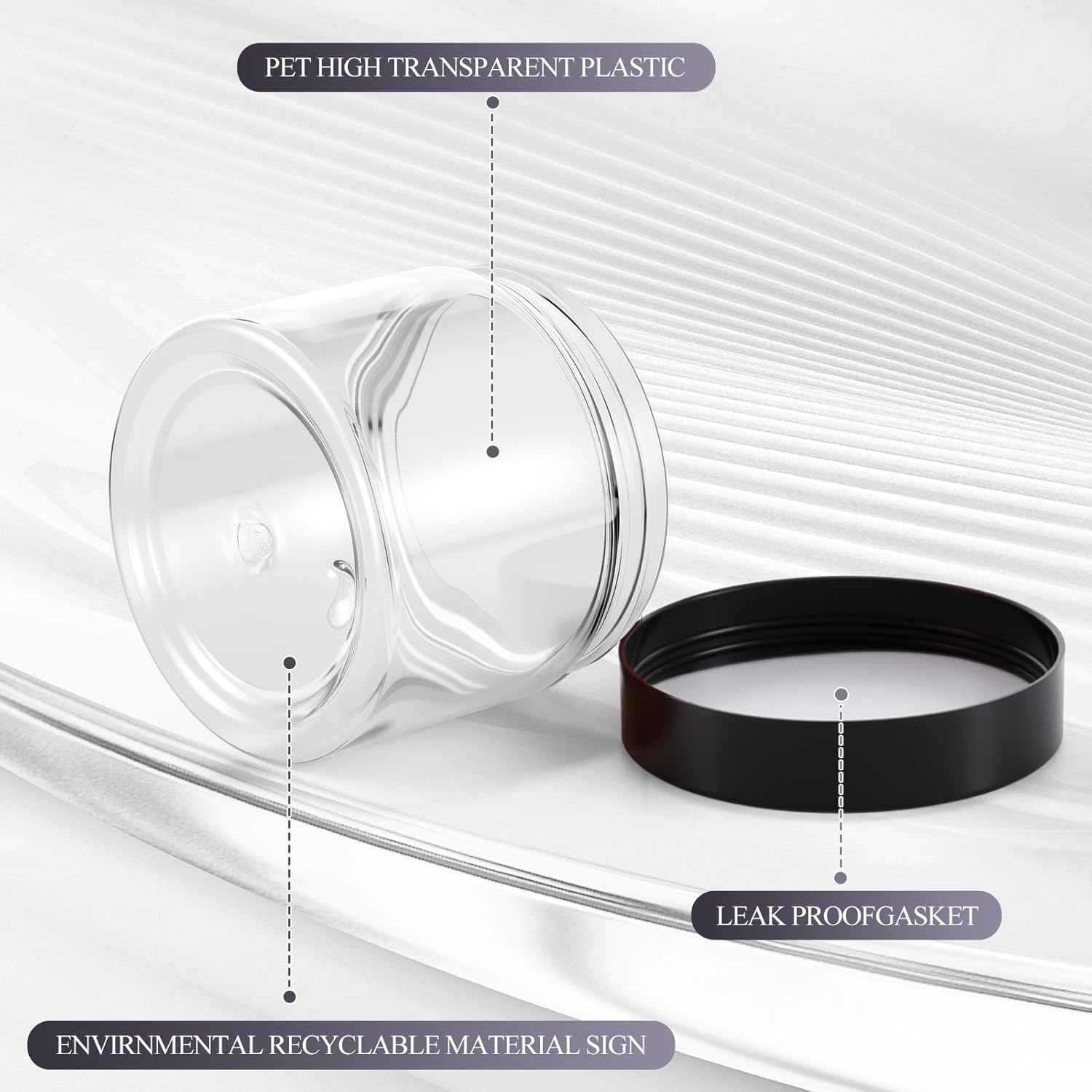 - Quality Material: the plastic jars with lids are made of quality plastic, without odd smell, does not contaminate your skincare products, stable, high temperature resistance, sealed storage and leak proof