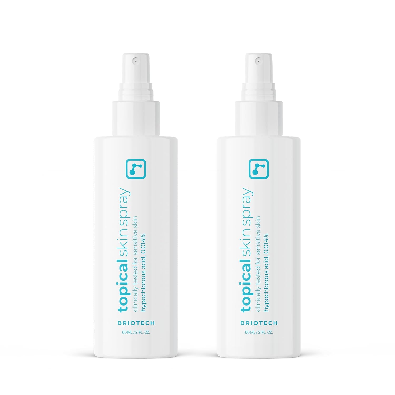 BRIOTECH Topical Skin Spray, Hypochlorous Acid Spray for Sensitive Skin, HOCl Facial Mist, Full Body Support Against Irritation, Calm Redness, Soothe Foot & Scalp, 2 oz Travel Size (2 Pack)