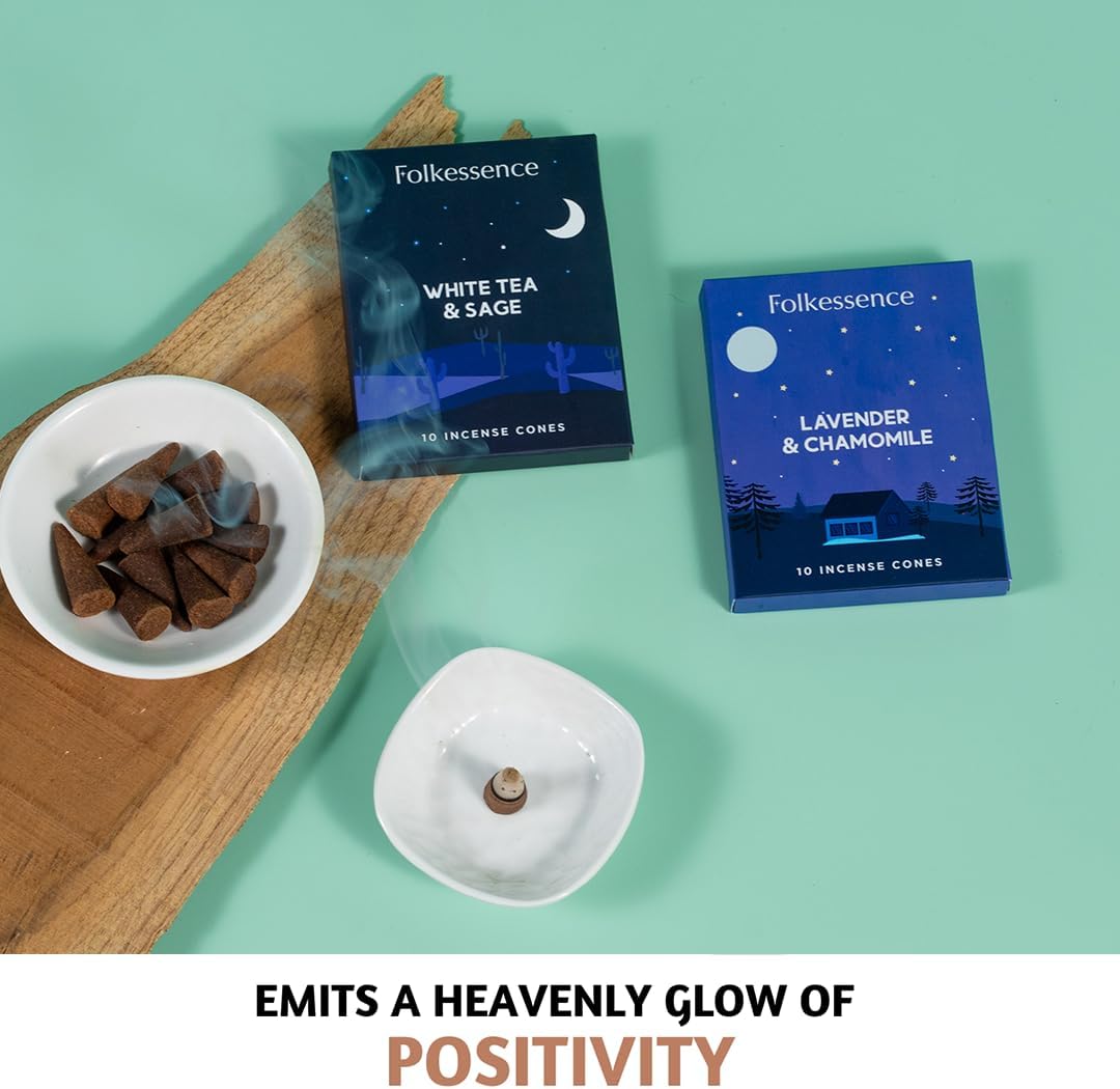 Folkulture Incense Cones Scented | Set of 2 Inscents-Cones (20 Cones) | Lavender, White Tea, Sage & Chamomile | Variety Pack Insence Cone for Relaxation and Meditation