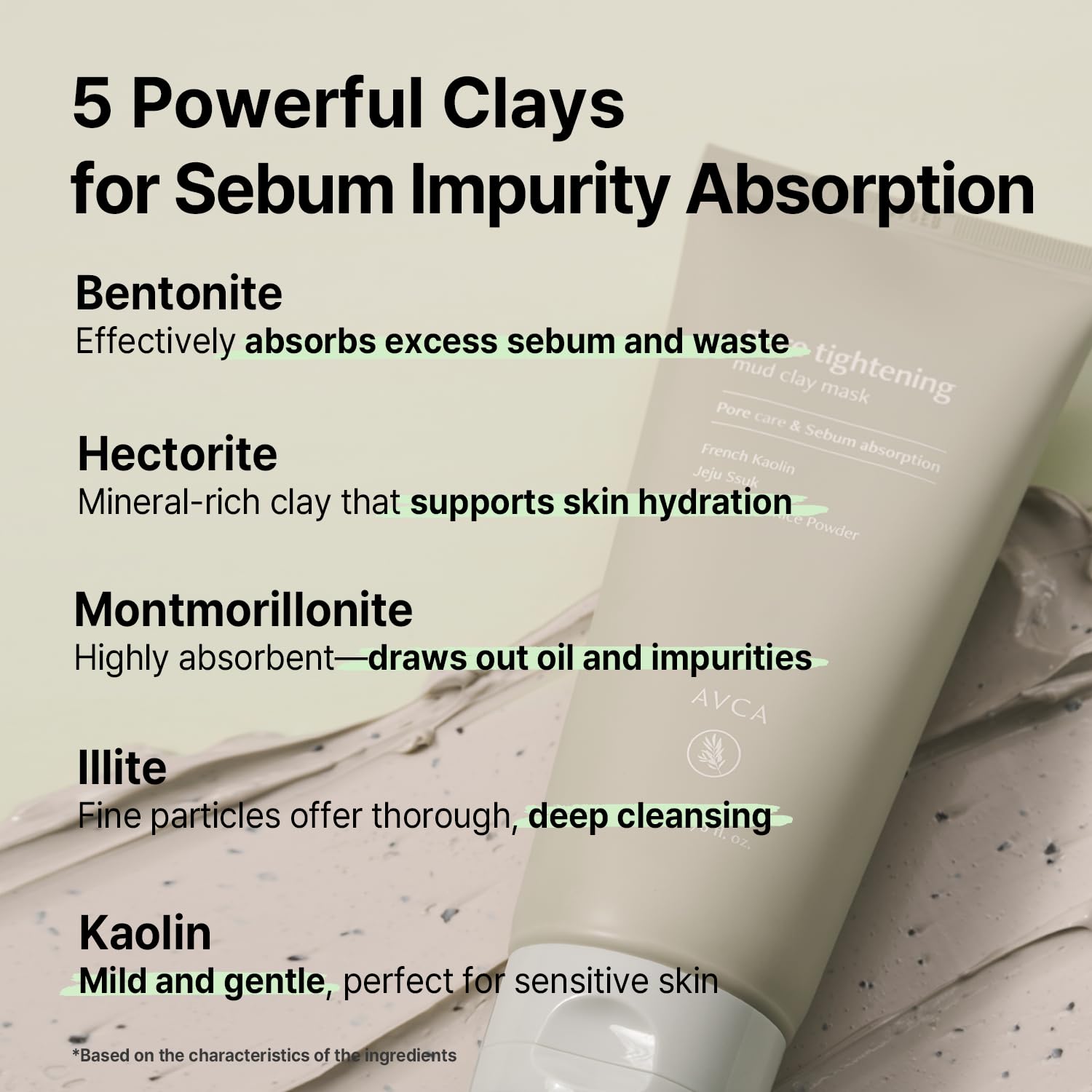 - [Impurity Absorption] This mask features five carefully selected clays, each offering unique benefits such as powerful sebum and impurity absorption, ultra-fine particles for tighter adherence, and naturally mineral-rich content.