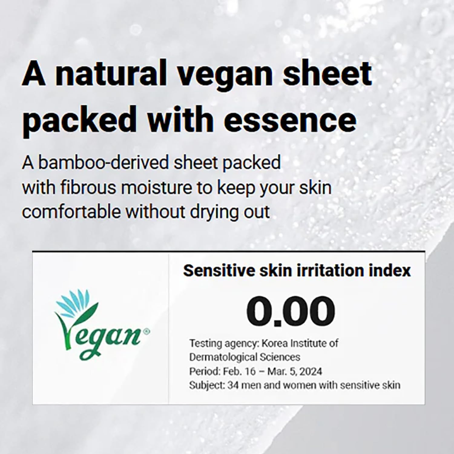 - BIODEGRADABLE SHEET - This VEGAN certified, eco-friendly sheet is silky soft and firmly hugs skin for optimal absorption of our powerful essence. Enhanced mask shape comfortably fits all face shapes. Tested and safe for sensitive skin.