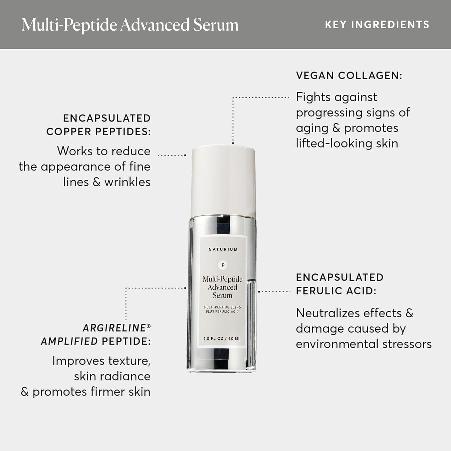 - POWERFUL, ADVANCED MULTI-PEPTIDE BLEND: The encapsulated copper peptides and Argireline Amplified peptide work to improve texture and reduce the appearance of fine lines and wrinkles. Encapsulated ferulic acid and collagen help firm skin's appearance