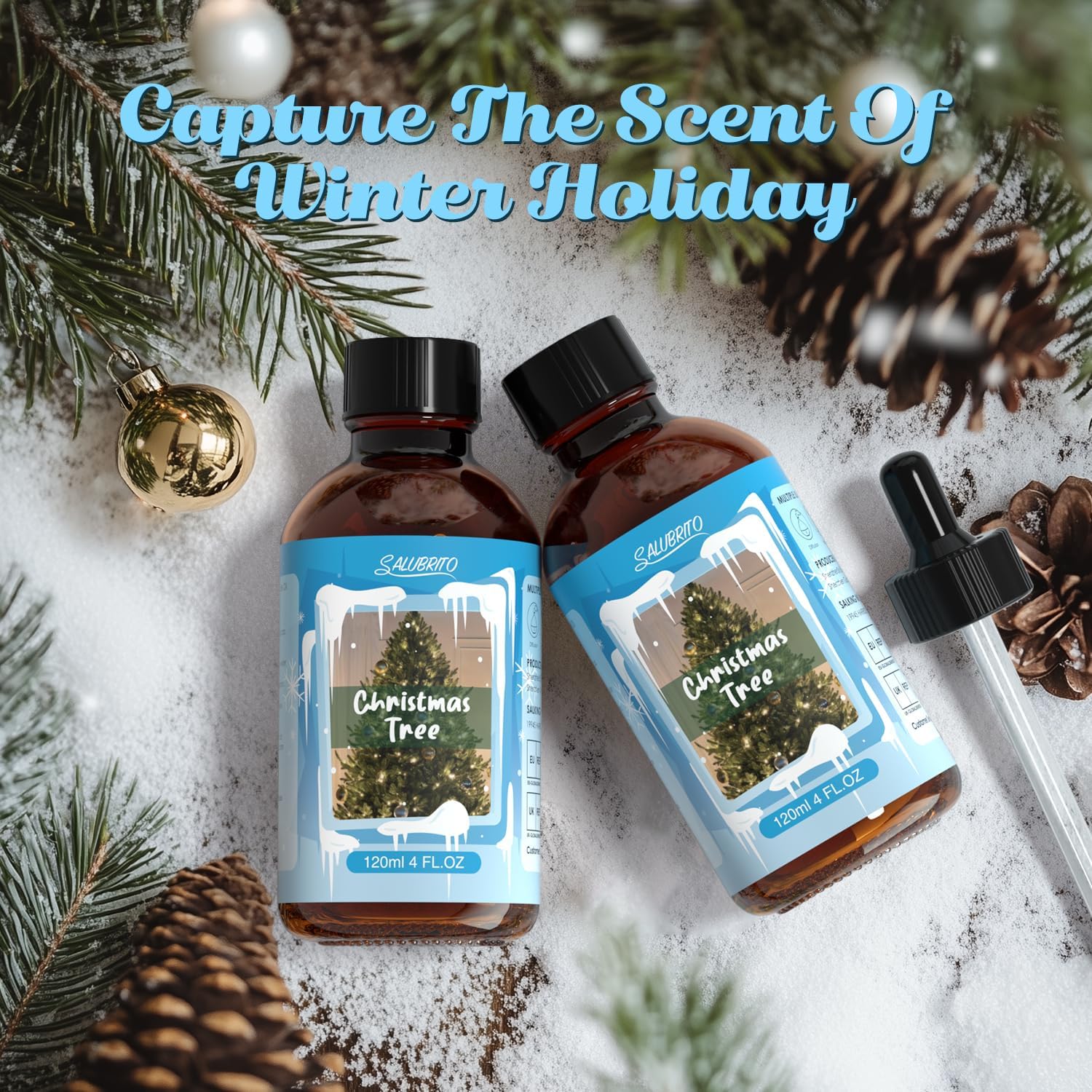 SALUBRITO Christmas Tree Essential Oil 4 Fl.Oz (120ml), Pure & Natural Fragrance Oils, Winter Essential Oil for Diffuser, Candle & Soap Making, Strong Scented Oil & Diffuser Oil